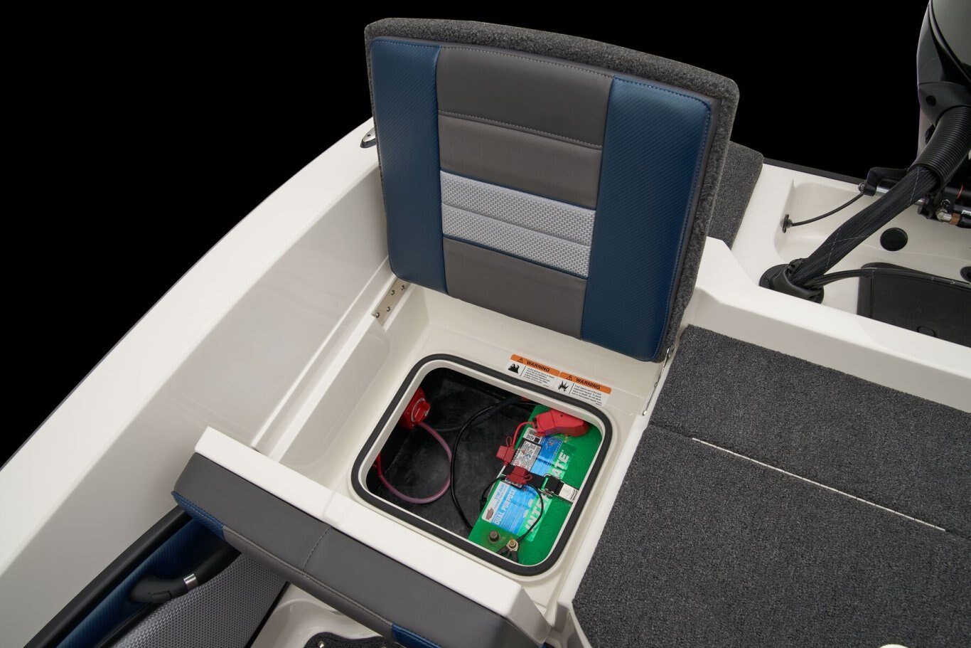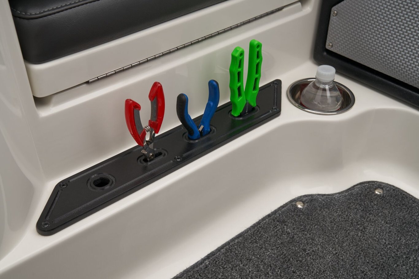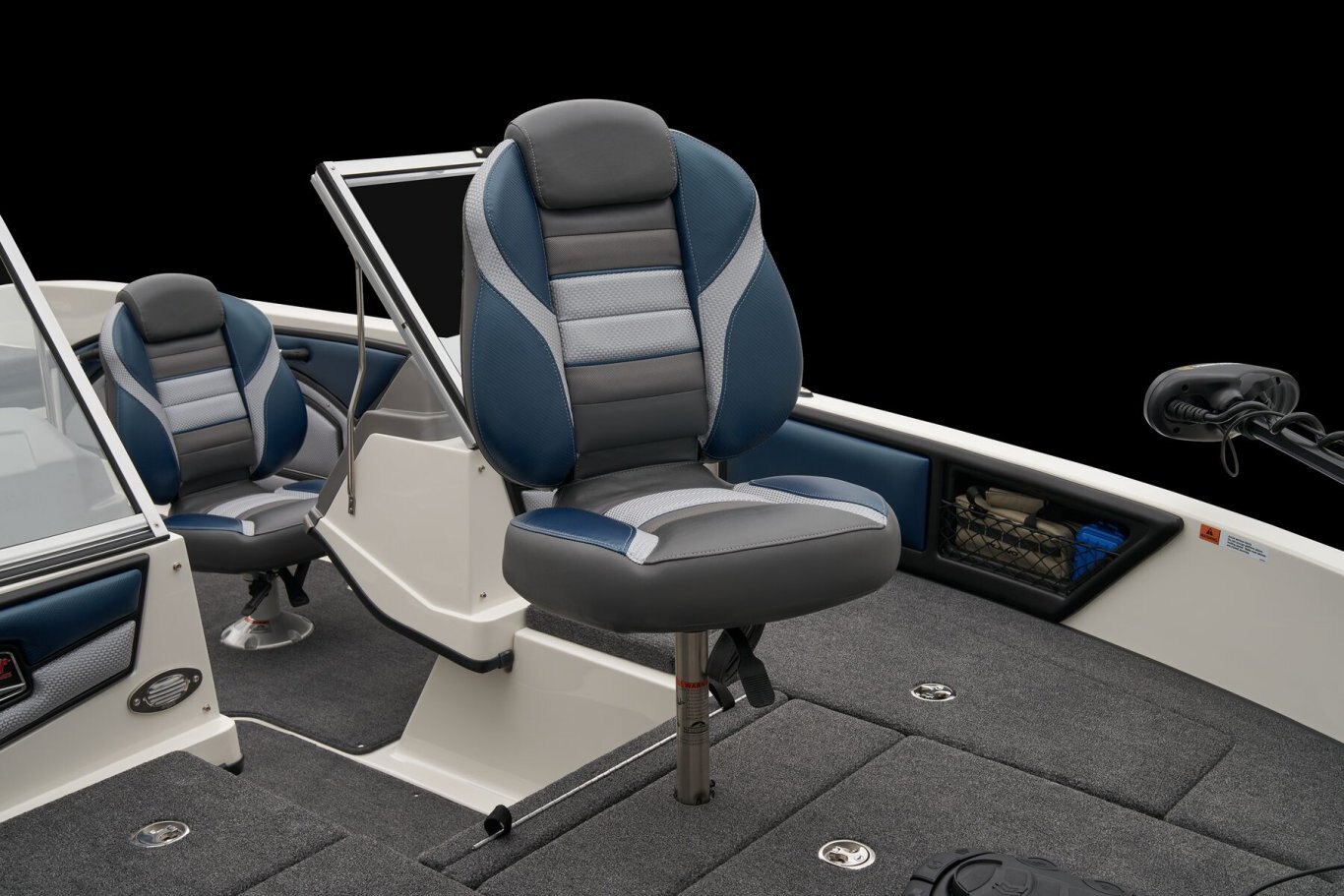 • Custom-fitted premium marine upholstery - (4) Soft Ride Seating (SRS) fold downs: (2) Bell Ped. w/ adjustable slide, (2) 15" Non-Adjustable Posts
