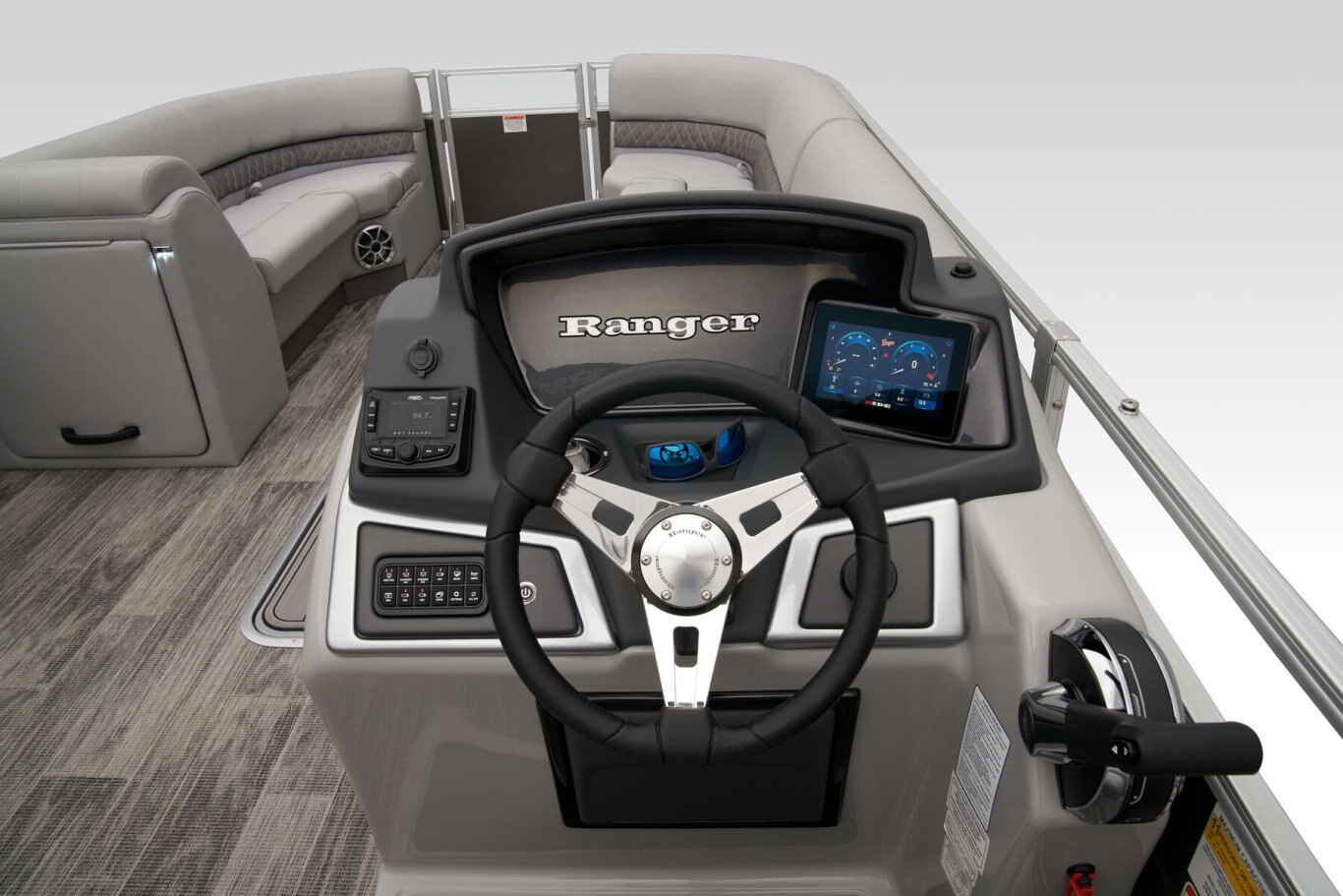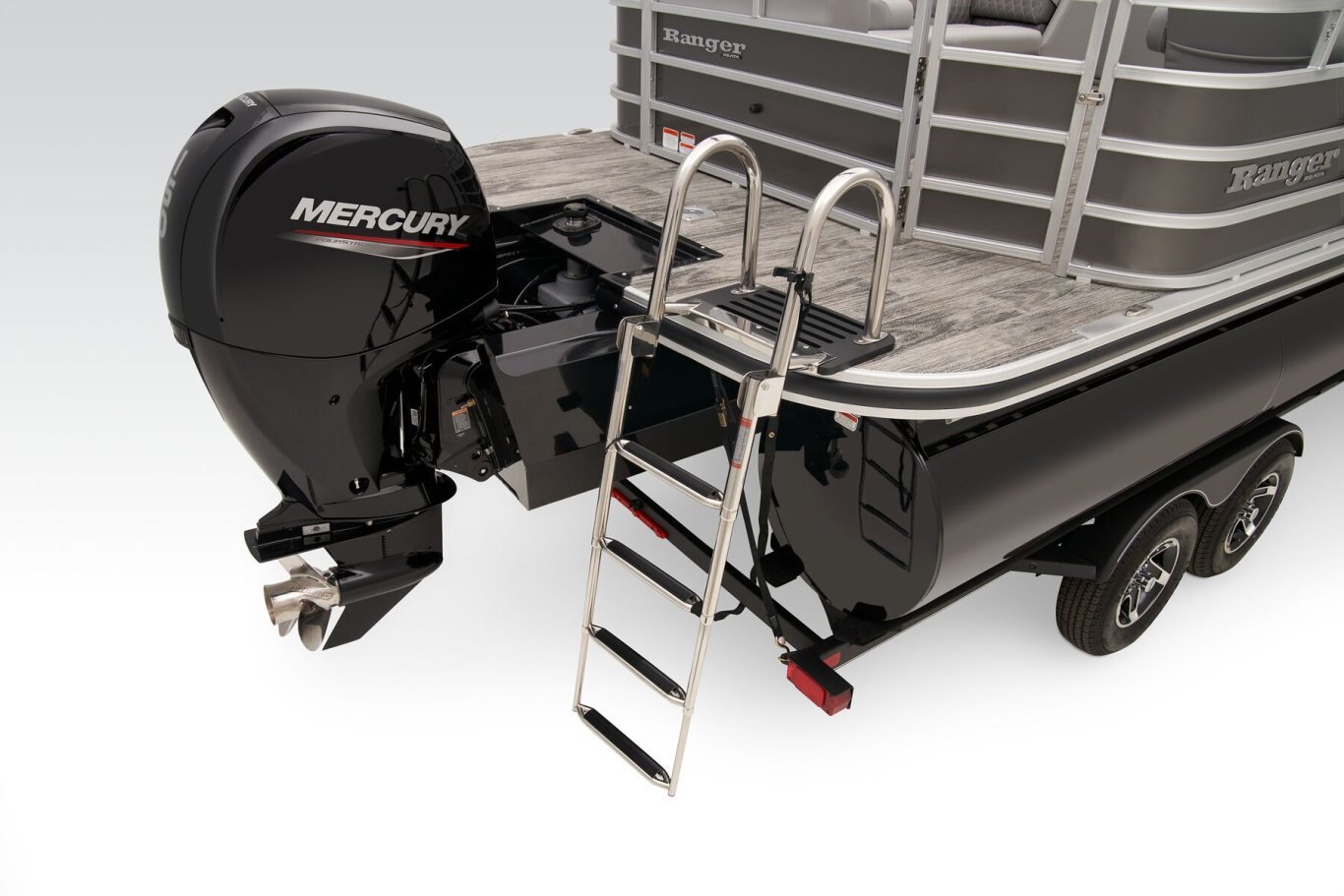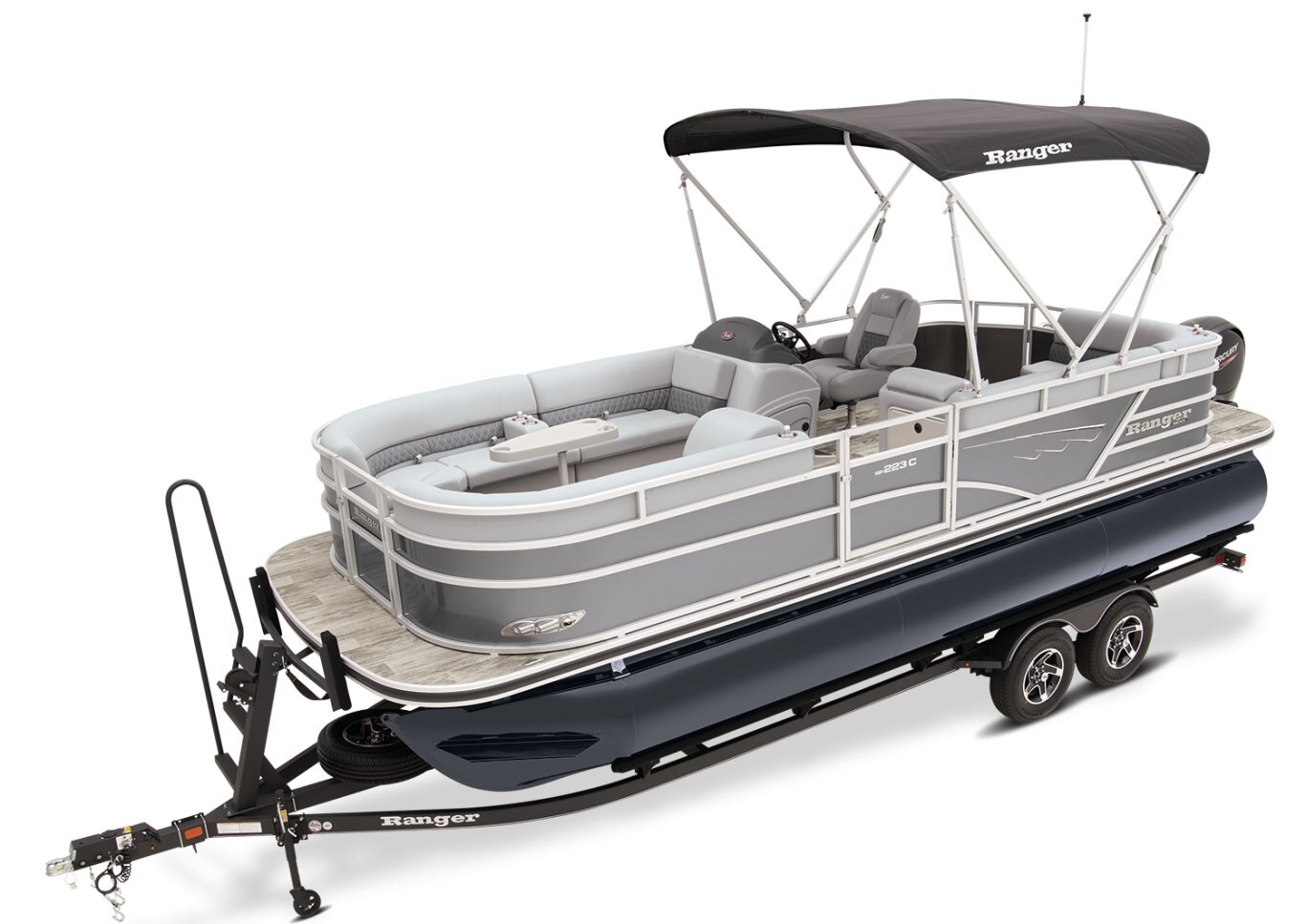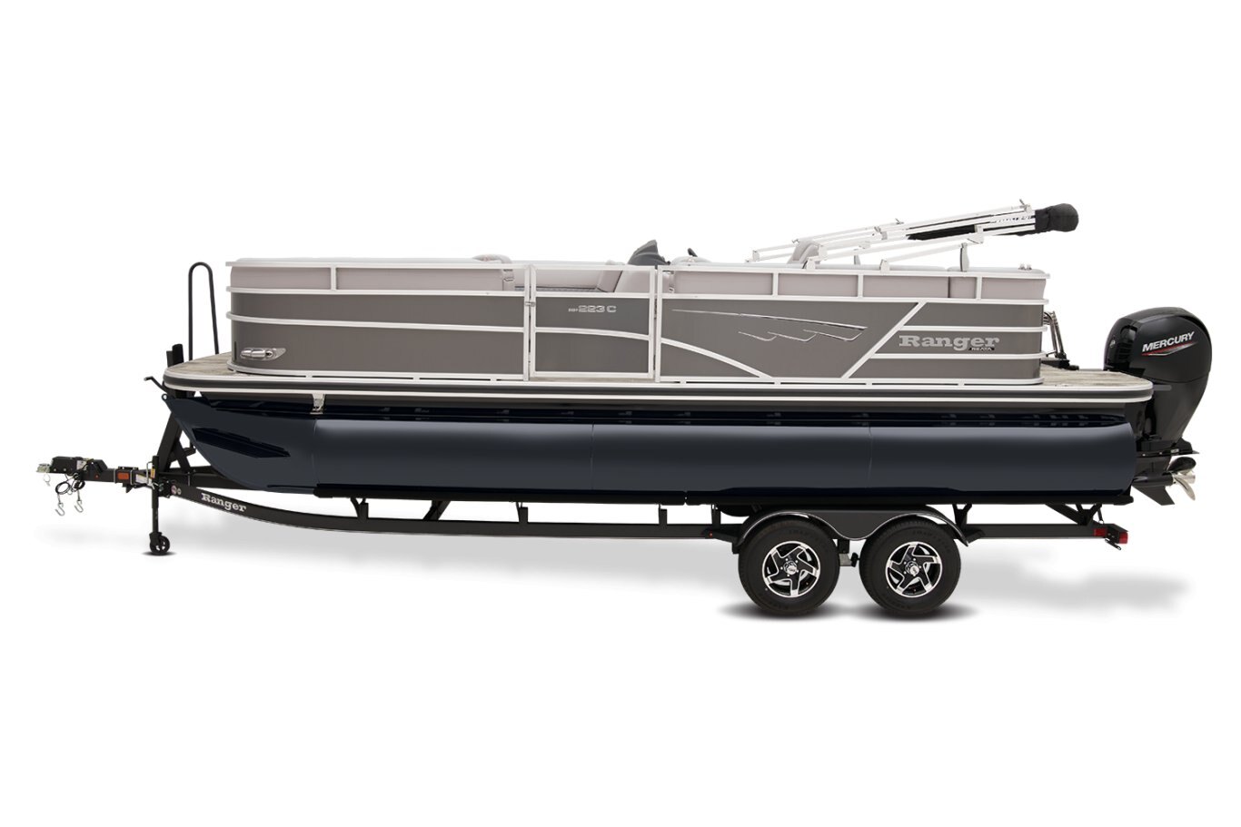 High performance at 0 MPHWith the increased stability of a tritoon design and a long list of luxury features, the 2025 Ranger® Reata® 223C has much to offer to your weekend getaway. Set out and explore the lake from the luxurious comfort of this Ranger's 22'1" deck big enough for 11 passengers to enjoy. This pontoon boat caters to a wide range of explorers. Enjoy the water from the full-width aft swim platform with a fold-down boarding ladder. Chase those thrills with the optional ski-tow pylon. Simply enjoy being in the moment while relaxing in 1 of the 3 plush corner lounges. However you want to enjoy the lake, this is your next favorite home away from home. The captain can take full control at the top-tier console. This helm boasts a touch-screen dashboard with a 12-button switch panel. Relax in the adjustable, swiveling, and reclining captain's chair under the standard 10' Dowco® EasyLift bimini top. The 4-speaker Wet Sounds® stereo with Bluetooth® compatibility allows you to set the soundtrack to create your ideal day on the water. The 2025 Ranger® Reata® 223C comes standard with a 150hp Mercury® L FourStroke outboard motor and has a recommended maximum 200hp rating. |