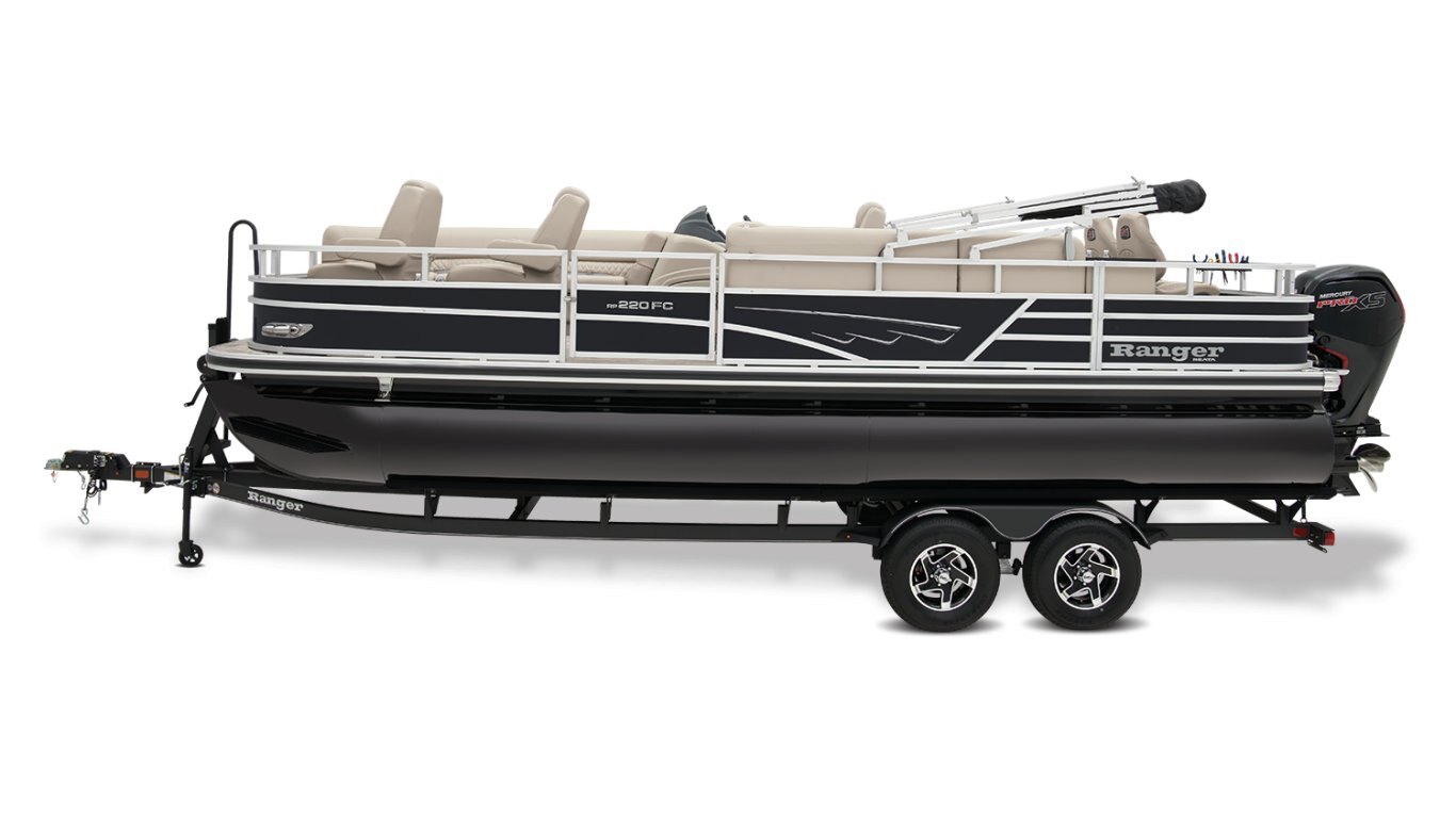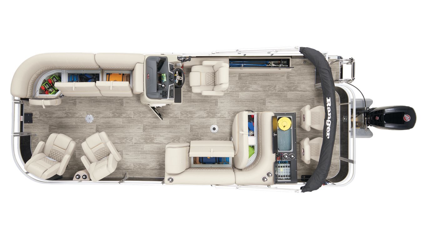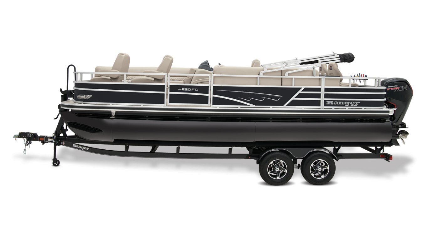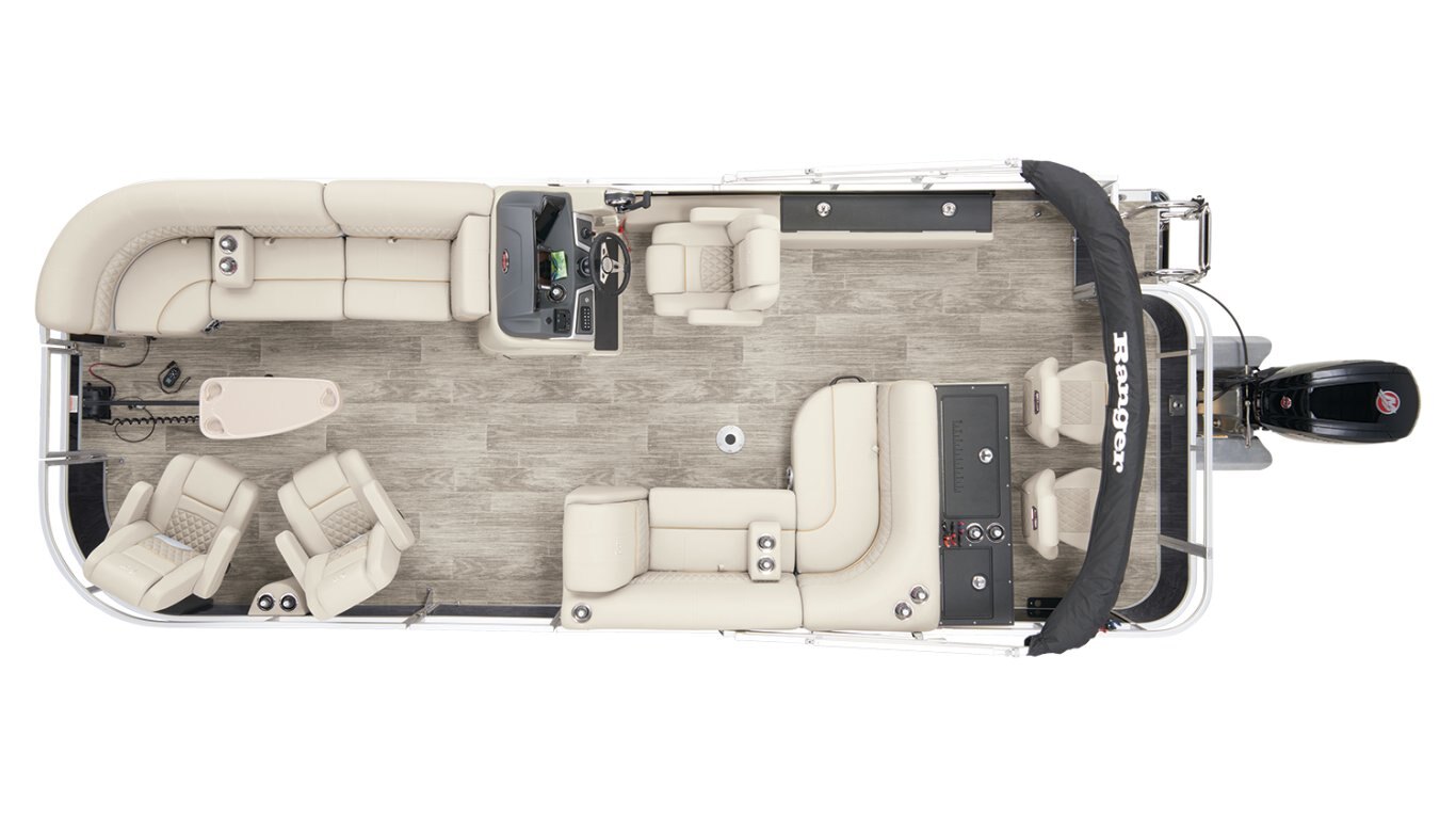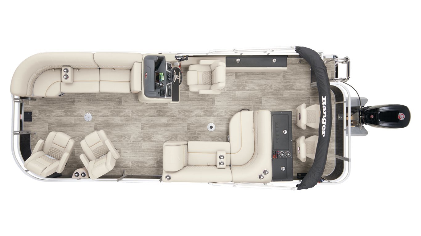 Leave the dock without compromisingThe 2025 Ranger® Reata® 220FC Fish & Cruise is a versatile pontoon built to please every style of lake adventurer, whether they're looking to catch dinner or just spend the day relaxing on the water. With room for a crew of 10, this Ranger® pontoon's 22'1" deck has plenty of features for everyone to enjoy. If you're looking to get some serious fishing done, take a seat in 1 of the 2 aft folding fishing chairs next to the 15-gal. aerated livewell, lockable rod box, and storage for your tools and gear. The fore portside deluxe chairs face inward toward a luxurious lounge to create a living-room space. The midship L-shaped lounge makes for a relaxing space that can be customized with a movable table and cup holders. Stow what you need for today's adventure in the enclosed in-console cooler compartment and under the lounges' seats. Between the Wet Sounds® stereo and 10' bimini top, this pontoon provides the ultimate floating space for your family and friends to live the lake life. The 2025 Ranger® Reata® 220FC comes standard with a 115hp Mercury® ELPT Pro XS® FourStroke Command Thrust outboard motor and has a recommended maximum 150hp rating. |