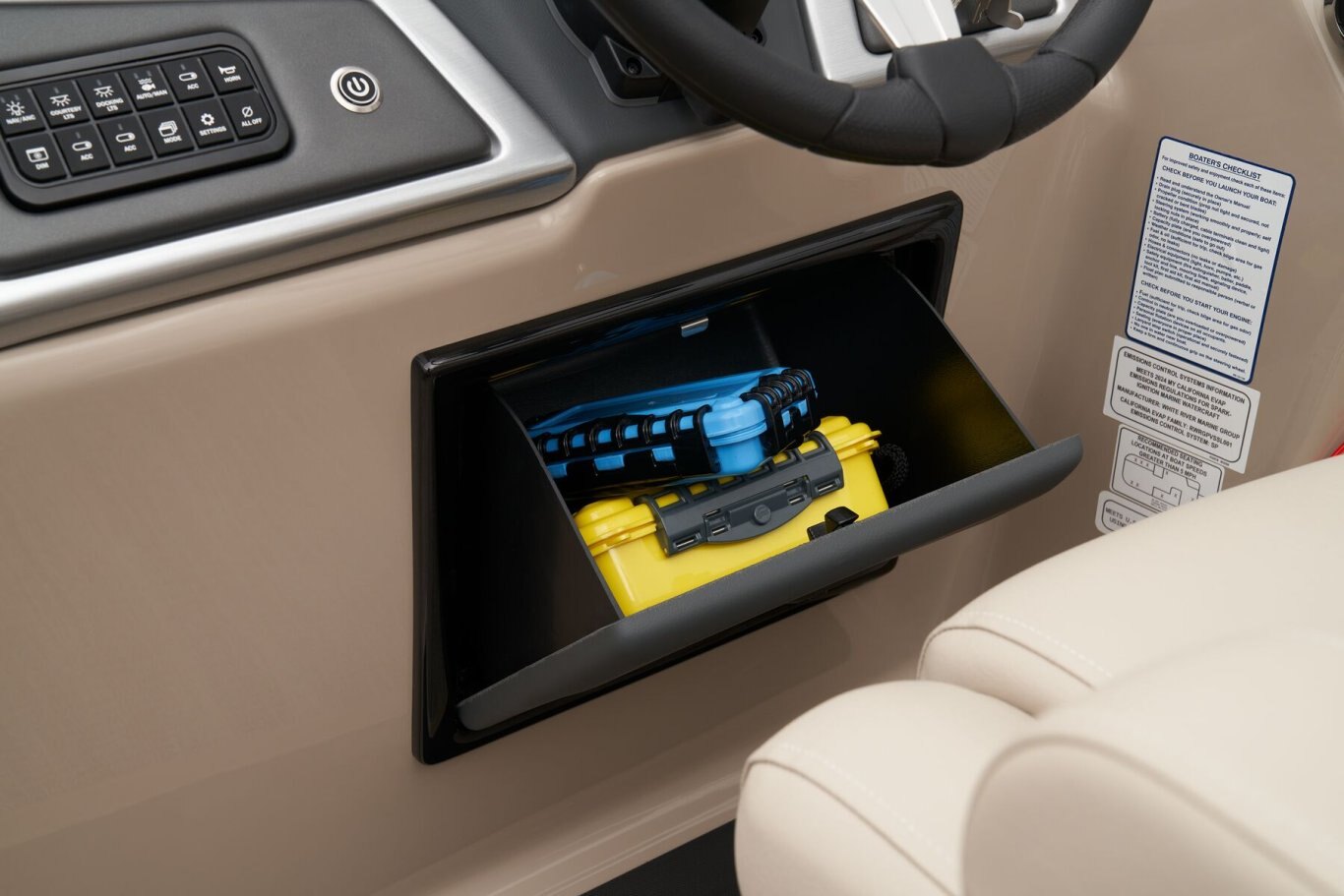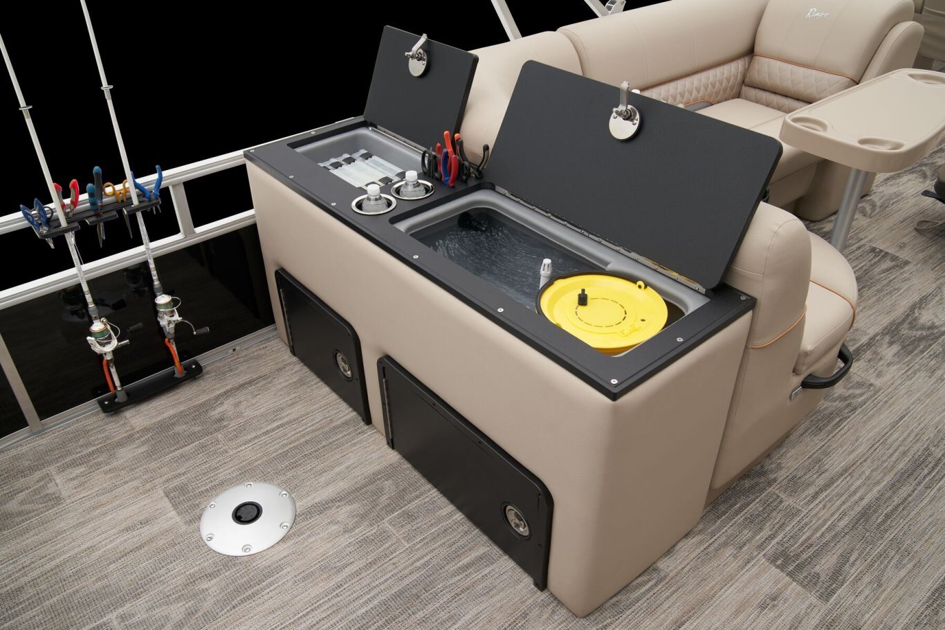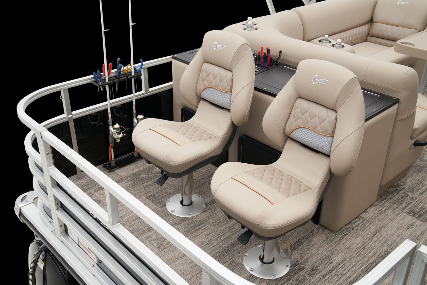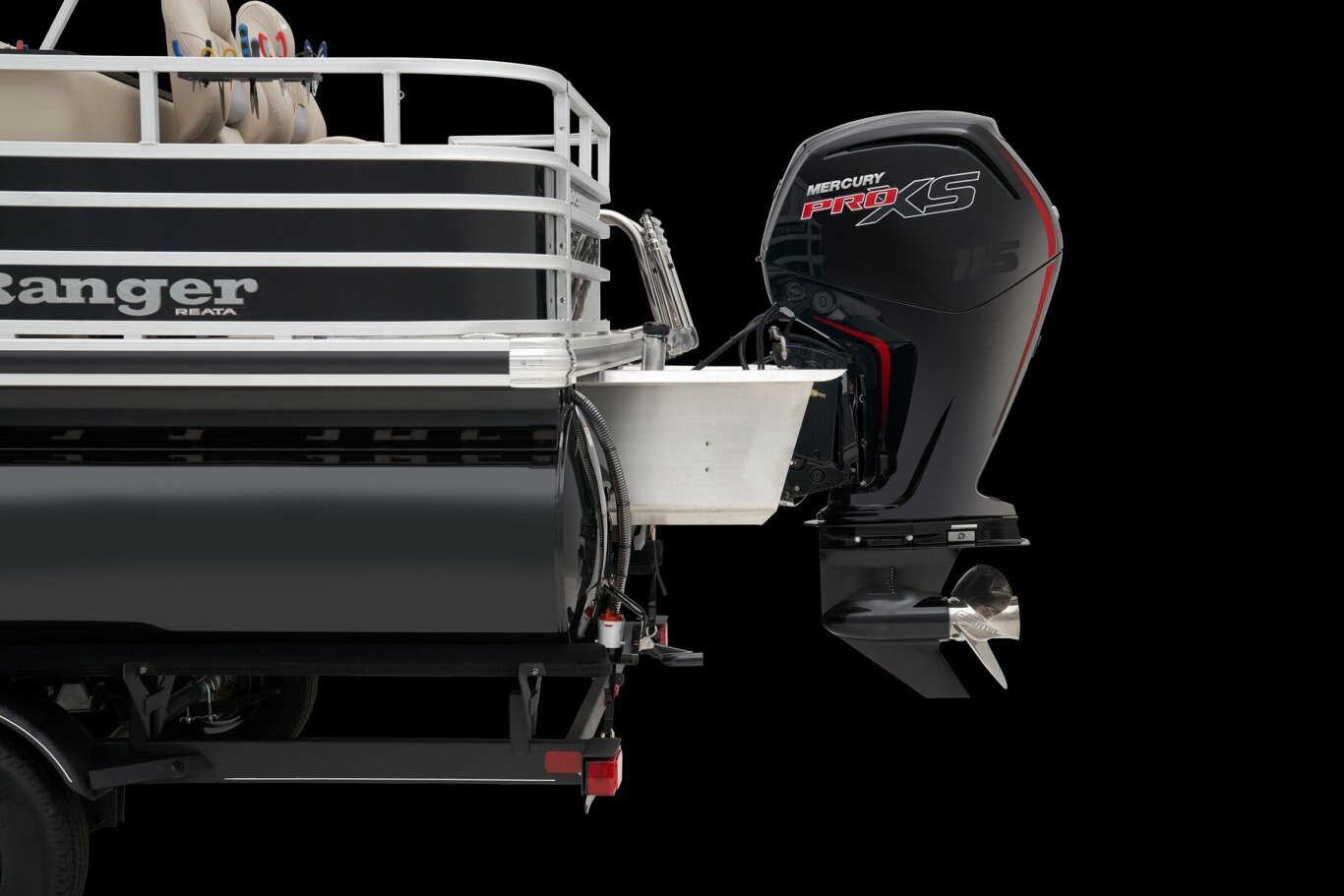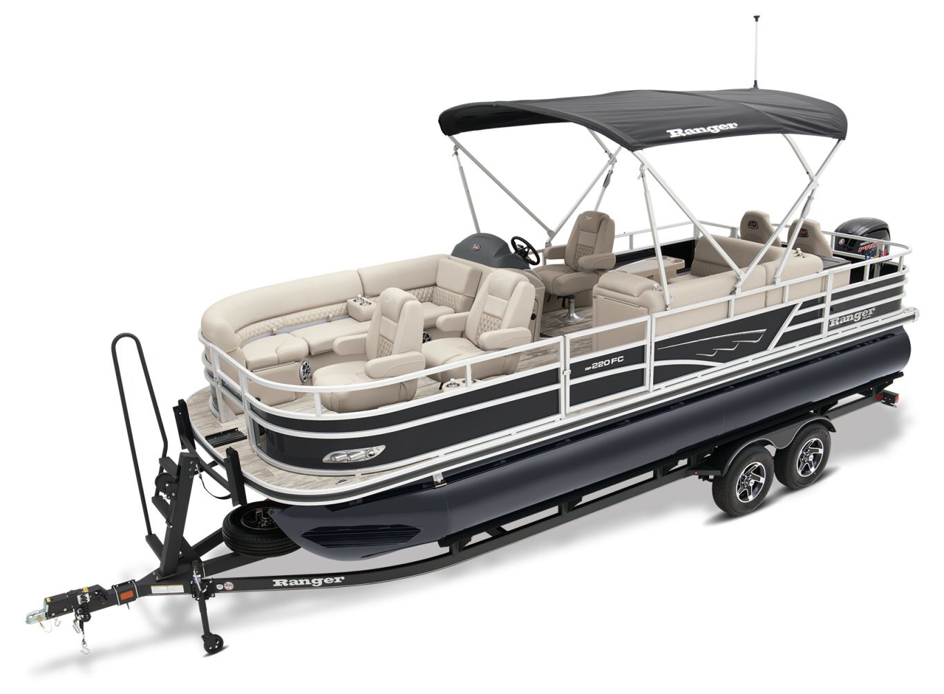 Leave the dock without compromisingThe 2025 Ranger® Reata® 220FC Fish & Cruise is a versatile pontoon built to please every style of lake adventurer, whether they're looking to catch dinner or just spend the day relaxing on the water. With room for a crew of 10, this Ranger® pontoon's 22'1" deck has plenty of features for everyone to enjoy. If you're looking to get some serious fishing done, take a seat in 1 of the 2 aft folding fishing chairs next to the 15-gal. aerated livewell, lockable rod box, and storage for your tools and gear. The fore portside deluxe chairs face inward toward a luxurious lounge to create a living-room space. The midship L-shaped lounge makes for a relaxing space that can be customized with a movable table and cup holders. Stow what you need for today's adventure in the enclosed in-console cooler compartment and under the lounges' seats. Between the Wet Sounds® stereo and 10' bimini top, this pontoon provides the ultimate floating space for your family and friends to live the lake life. The 2025 Ranger® Reata® 220FC comes standard with a 115hp Mercury® ELPT Pro XS® FourStroke Command Thrust outboard motor and has a recommended maximum 150hp rating. |