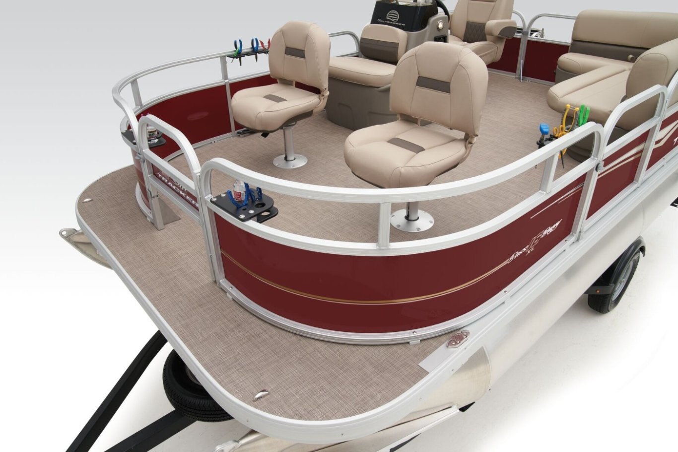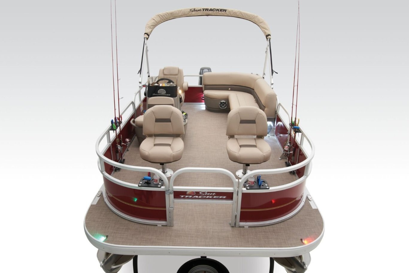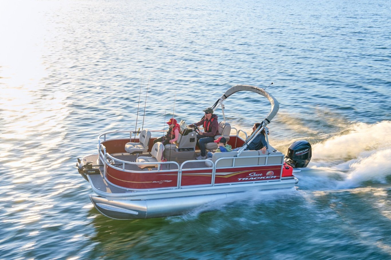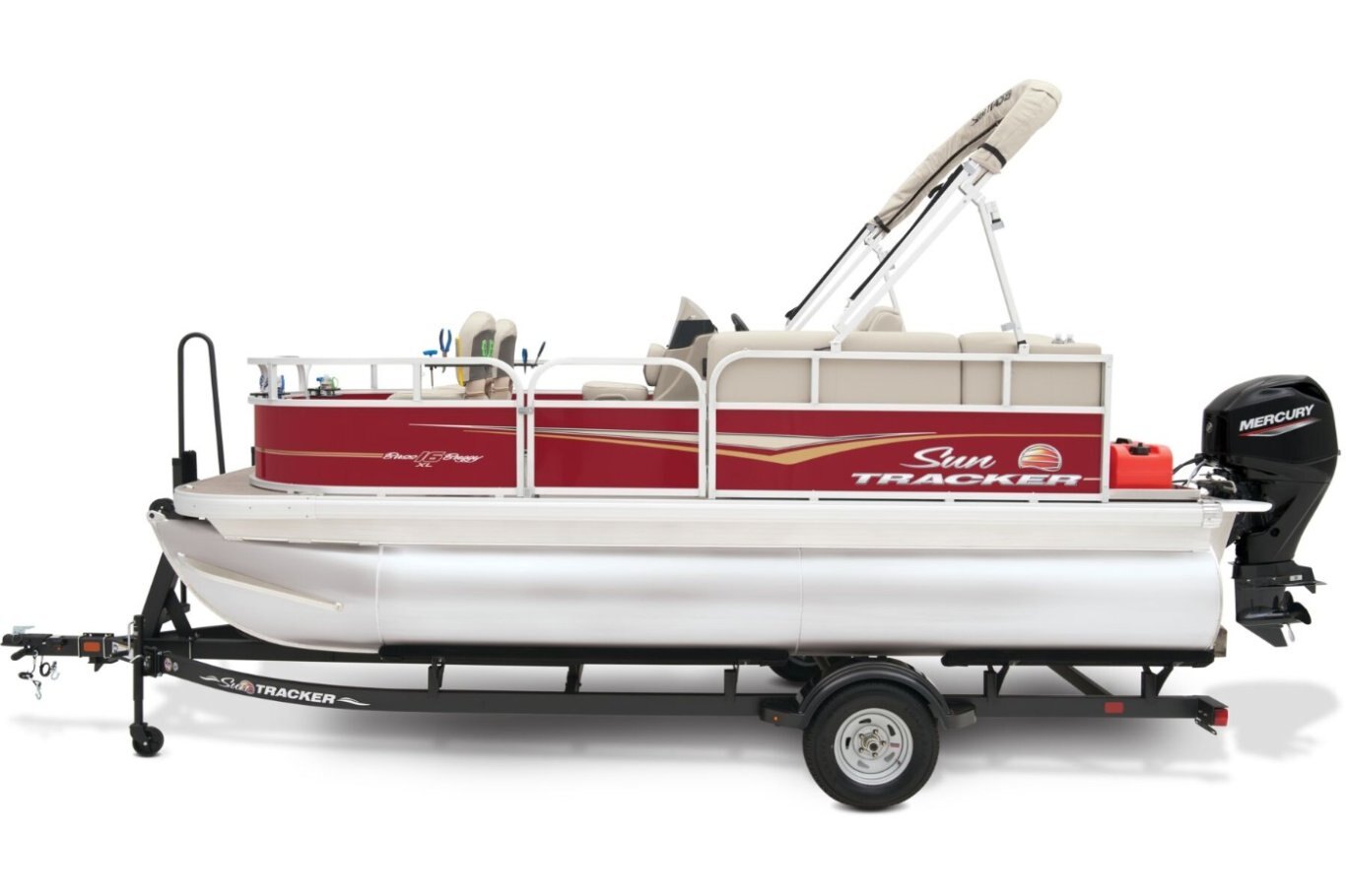 The affordable 2025 BASS BUGGY® 16 XL Select lets you get out on the water without breaking the bank. As the most compact pontoon in the SUN TRACKER® fishing pontoon lineup, the BASS BUGGY® 16 XL can be easily towed with just a crew of 1. However, its 16' deck is spacious enough to hold 7 passengers looking to cast lines on the lake. Set up shop in 1 of the 2 removable and foldable forward fishing chairs, the console-mounted livewell that doubles as another seat, and the swiveling captain's chair. Stretch your legs on the L-shaped aft lounge during fishing breaks. The kids can dive into the water from the 3 gates and extended fore and aft platforms. An aft telescopic reboarding ladder makes getting back into the boat a breeze. Use the 7' bimini top to get some shade while you fish. Enjoy your favorite tracks through the Bluetooth®-compatible AM/FM Wet Sounds® stereo with 2 upholstery speakers. Integrated rod holders, drink holders, and more keep everything you need for a great day of fishing close by. The BASS BUGGY® 16 XL Select comes standard with a 20hp Mercury® ELPT FourStroke outboard motor and has a recommended maximum 50hp rating. |