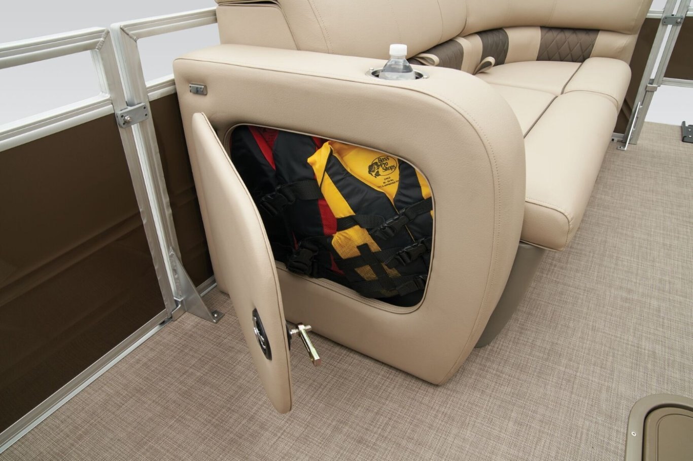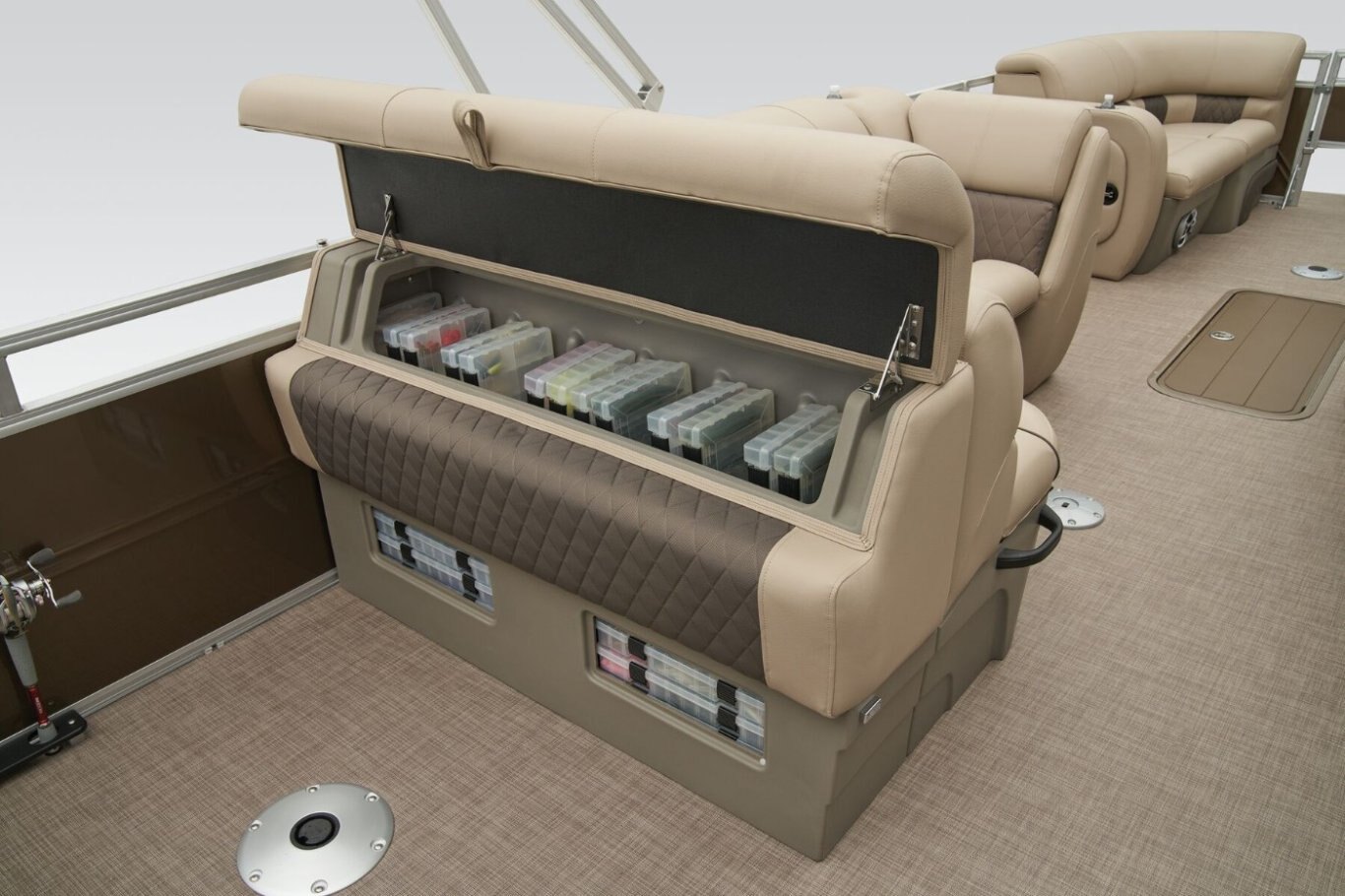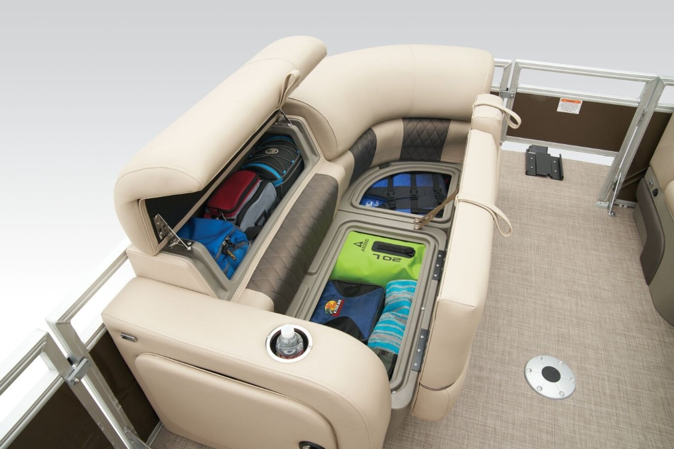 In-floor storage The in-floor storage locker is 88" long and has an automatic bilge pump, making it perfect for stowing watersports gear. |