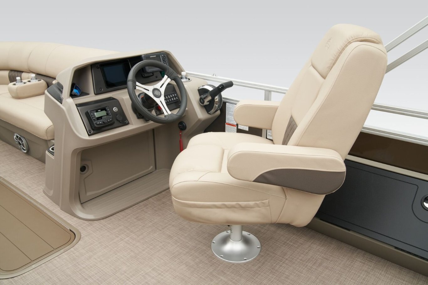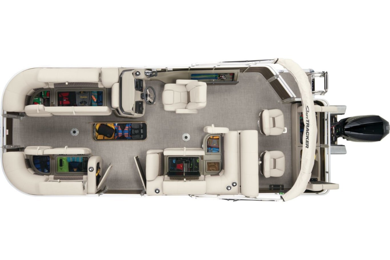 There's something for every kind of aquatic adventurer on the 2025 SPORTFISH™ 22 XP3 tritoon boat! This pontoon boat's 3 logs with lifting strakes make its 22' deck more stable for up to 11 passengers. That deck is full of fun features—especially for anglers. They can sit back and cast lines in the removable and foldable dual fishing chairs in the aft casting deck. The aft bench offers more seating, but also hides extra storage for fishing supplies and a 16-gal., aerated livewell. A starboard lockable rod compartment keeps their gear safe until it's time to fish again. For everyone else, there are the 2 bow couches and L-shaped aft lounge. Under the seats and behind the seat backs, you'll find the STOW MORE™ system, which allows you to bring all the supplies and gear you need and keep them out of the way. Keep even more in the in-floor storage compartment. This pontoon boat also features a removable and movable table, a Bluetooth®-compatible, 2-speaker Wet Sounds® stereo, and a 10' QuickLift® bimini top. The SPORTFISH™ 22 XP3 comes standard with a 150hp Mercury® L FourStroke outboard motor and has a recommended maximum 200hp rating. |