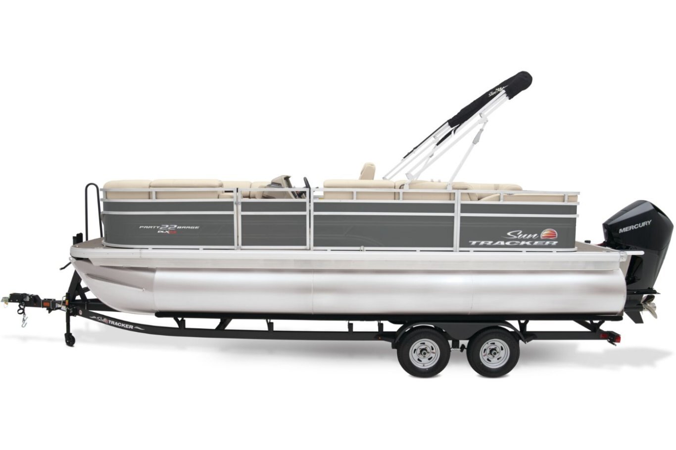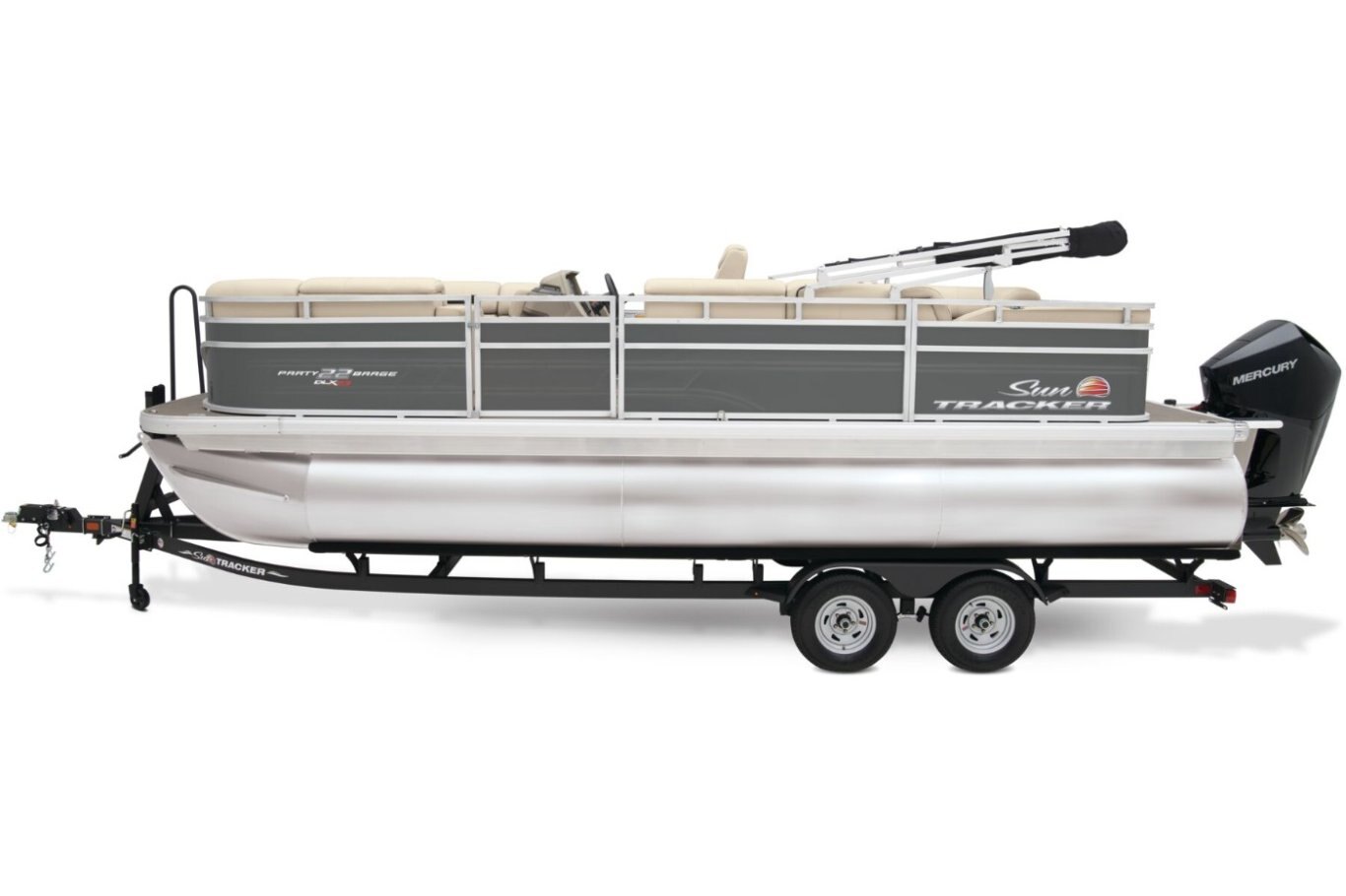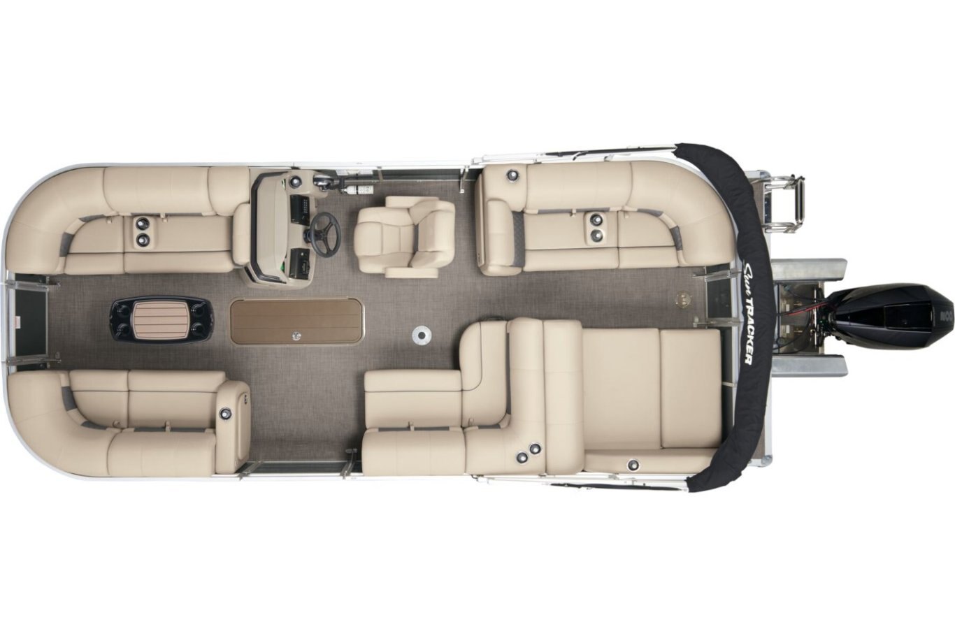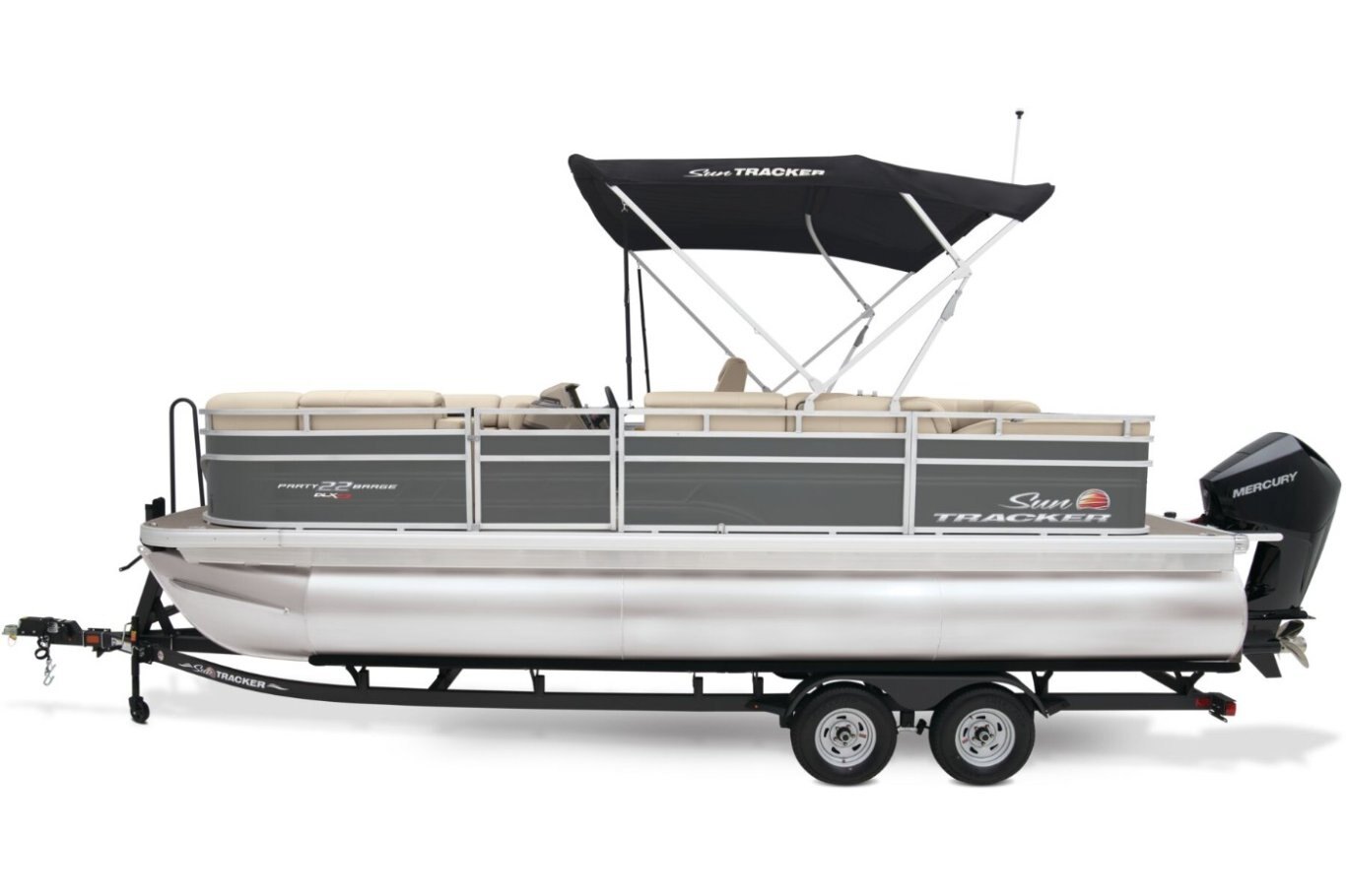 Create your ideal lake hangout space with the 2025 PARTY BARGE® 22 RF XP3! The difference between this and its non-RF sibling is that it has a rear-facing aft lounge area perfect for relaxing. Like its sibling, this PARTY BARGE® allows 11 people on board for hours of fun on the water. Take your pick of any of the 5 lounge seats, or take control in the comfortable, swiveling captain's chair. The STOW MORE™ seat-back and under-seat storage areas allow you to organize and secure everything you need for the day's trip. Between standard features such as the full-width swim decks, 10' QuickLift® bimini top, and 4-speaker Wet Sounds® stereo with Bluetooth®, this SUN TRACKER® pontoon boat gives you everything you need to get hours of fun with your favorite people. The back swim deck has a 4-step telescoping boarding ladder for getting back in the boat after taking dips in the water. This pontoon gets increased performance with the addition of a third pontoon log, as well as lifting strakes, underpinning, and hydraulic steering. The PARTY BARGE® 22 XP3 comes standard with a 150hp Mercury® L FourStroke outboard motor and has a recommended maximum 200hp rating. |