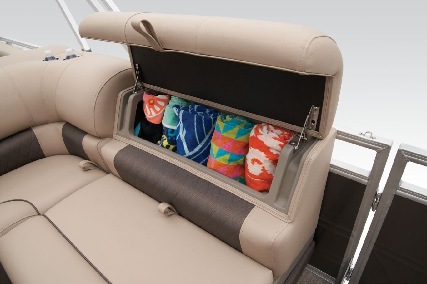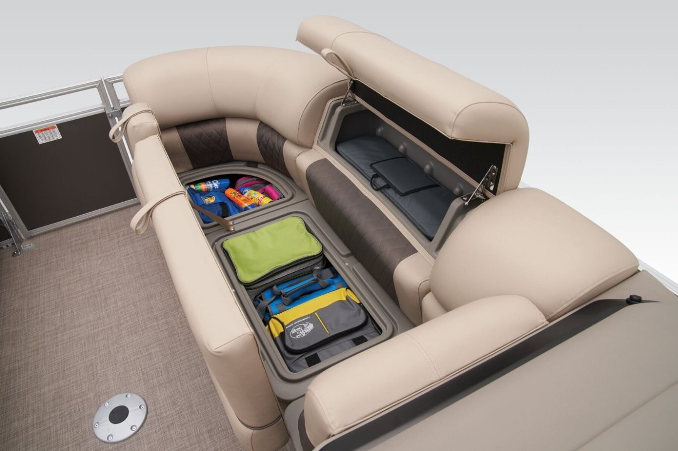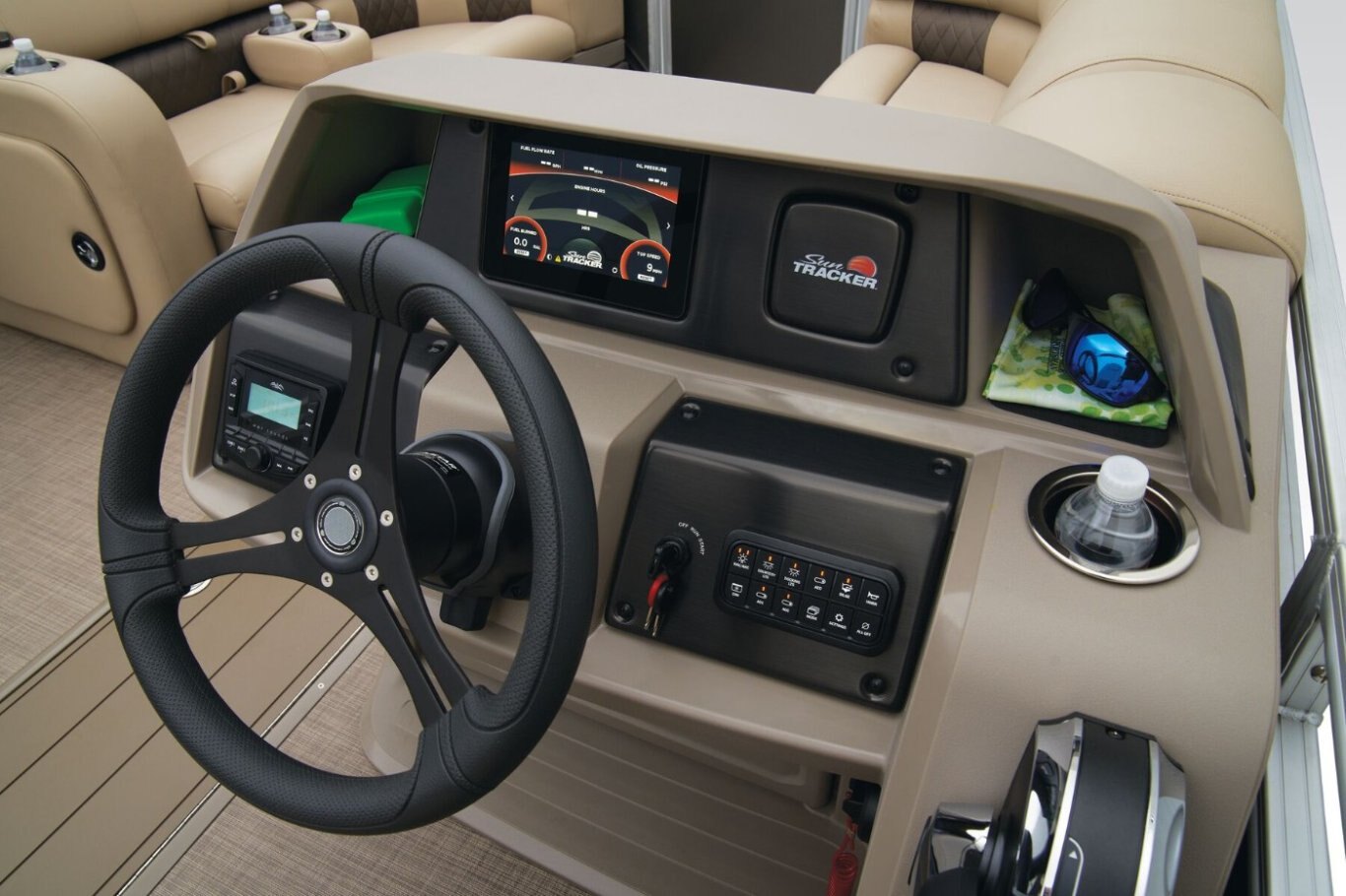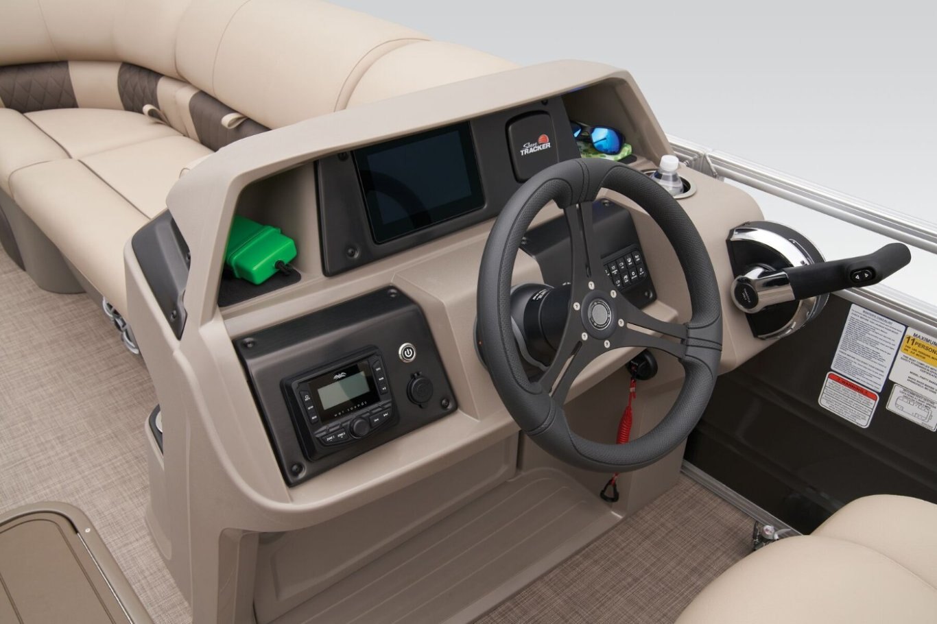 Create your ideal lake hangout space with the 2025 PARTY BARGE® 22 RF XP3! The difference between this and its non-RF sibling is that it has a rear-facing aft lounge area perfect for relaxing. Like its sibling, this PARTY BARGE® allows 11 people on board for hours of fun on the water. Take your pick of any of the 5 lounge seats, or take control in the comfortable, swiveling captain's chair. The STOW MORE™ seat-back and under-seat storage areas allow you to organize and secure everything you need for the day's trip. Between standard features such as the full-width swim decks, 10' QuickLift® bimini top, and 4-speaker Wet Sounds® stereo with Bluetooth®, this SUN TRACKER® pontoon boat gives you everything you need to get hours of fun with your favorite people. The back swim deck has a 4-step telescoping boarding ladder for getting back in the boat after taking dips in the water. This pontoon gets increased performance with the addition of a third pontoon log, as well as lifting strakes, underpinning, and hydraulic steering. The PARTY BARGE® 22 XP3 comes standard with a 150hp Mercury® L FourStroke outboard motor and has a recommended maximum 200hp rating. |