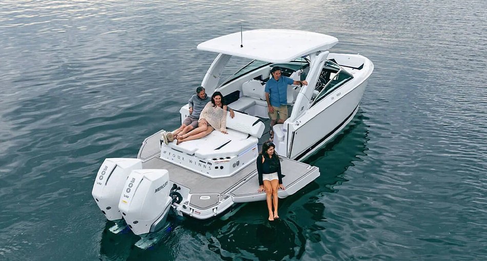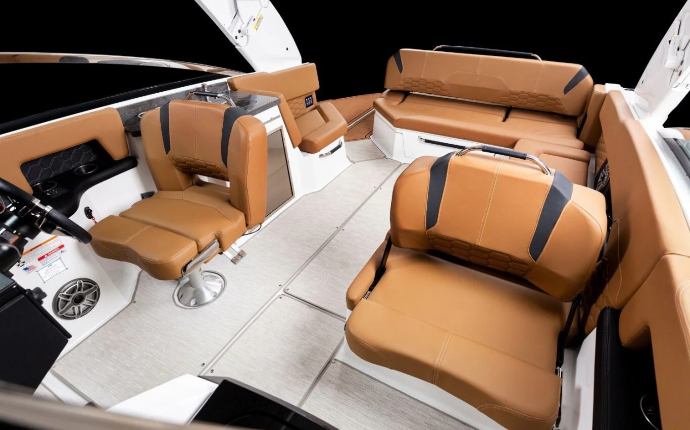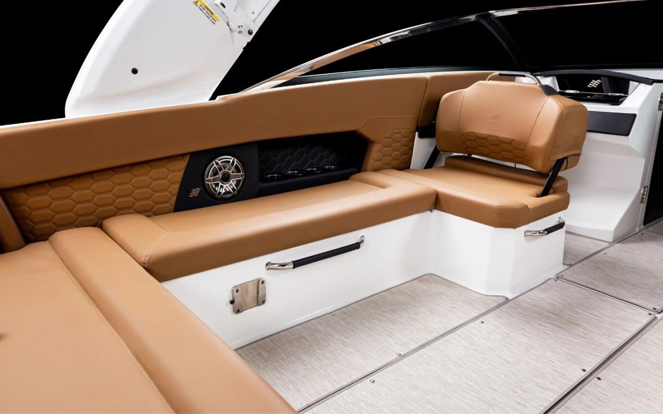 The embodiment of style and convenienceImmerse yourself in the sophistication of the H9 Outboard. This model features Elegant Side Terraces, a fold-down backrest for sunbathing, and various customizable features. With its sleek design, premium handsewn upholstery, and unparalleled comfort and style, the H9 OB is designed to impress. Navigate effortlessly with enhanced cockpit controls and enjoy the convenience of multiple storage compartments and a built-in galley. Elevate your boating experience with the H9 OB. |