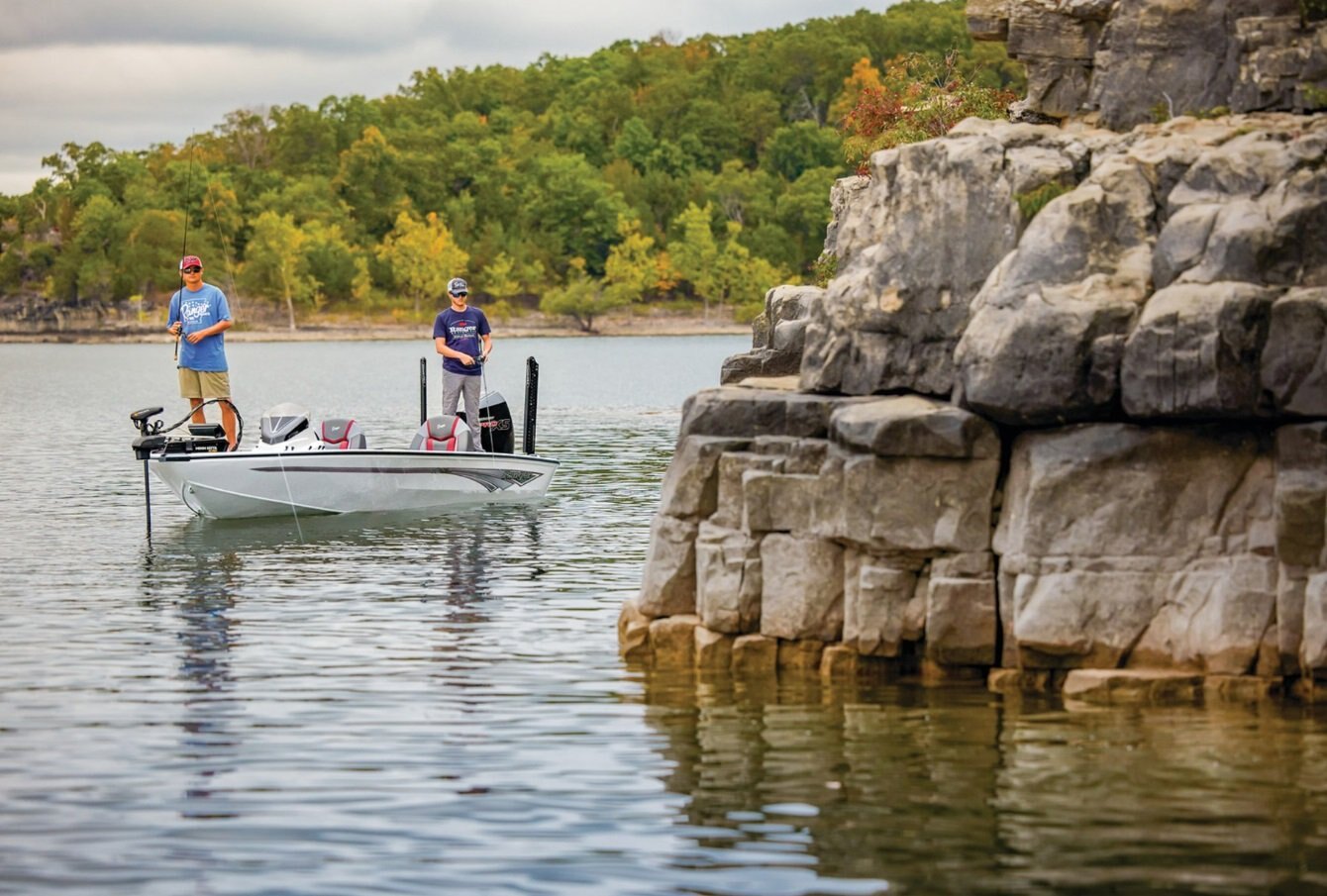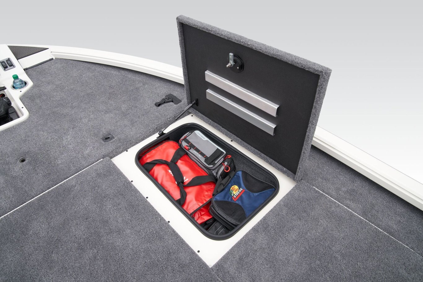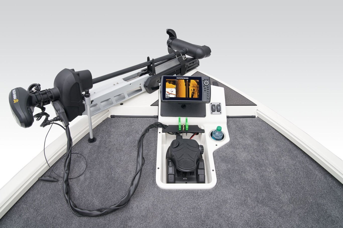• Fiberglass bow panel with recessed trolling motor pedal