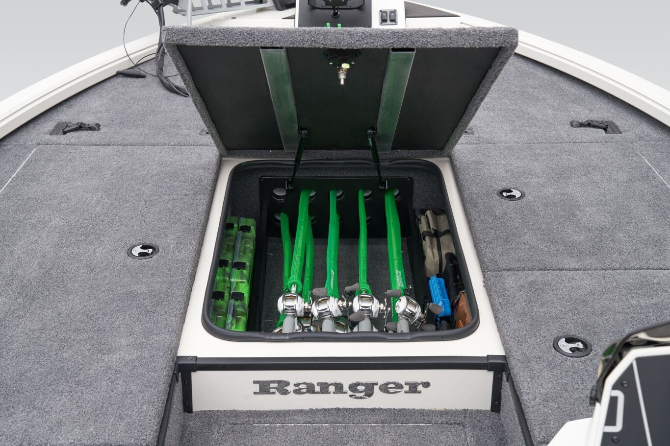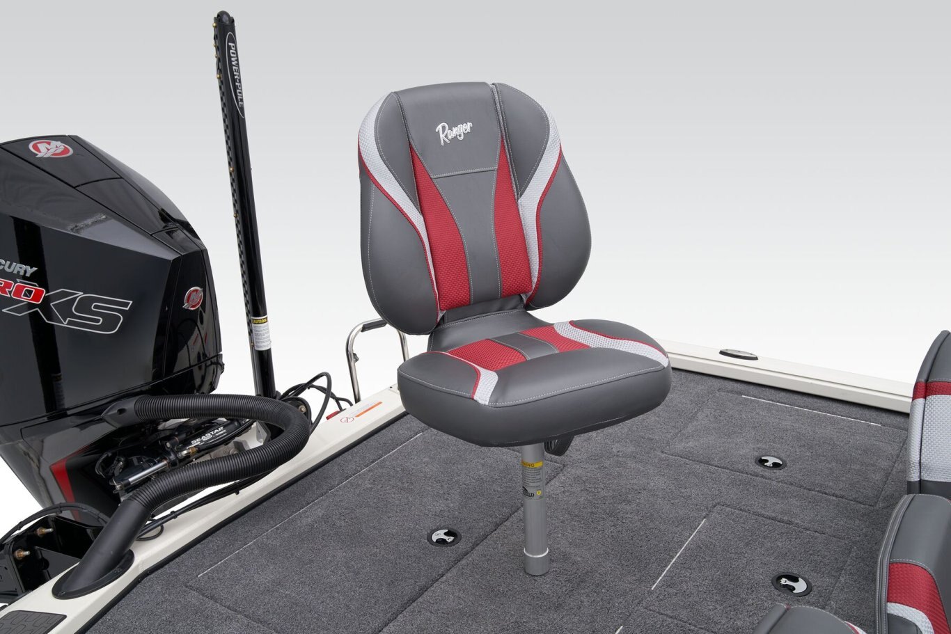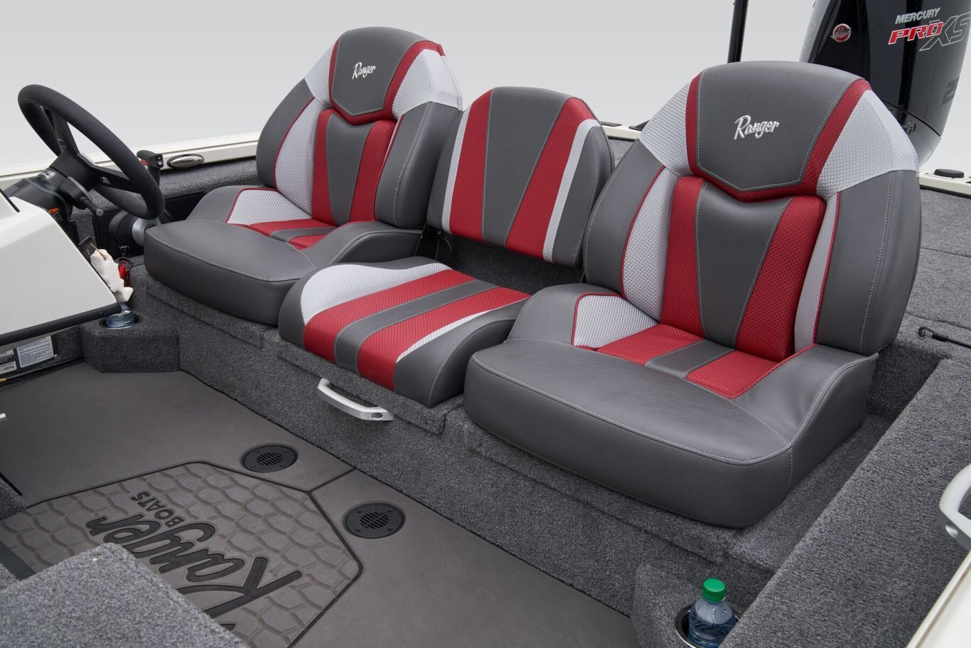 The pad-bottom hull is sculpted for increased all-around performance, from a blistering holeshot and on-rails handling to a screaming top end. With 250 horses at the ready, you’ve got the muscle to hang with anyone, and with legendary Ranger quality, you’ll be doing it with greater peace of mind. Smooth lines do more than please the eye; they’re made to make you forget you’re not in a top-of-the-line fiberglass rig. The setback transom increases hole shot and handling ability, while smoothing the flow of water to the prop, giving you more grip in all conditions. Because it’s a Ranger, you know it’s full of our signature foam flotation that unitizes the hull for our legendary One-Piece-Feel™construction.