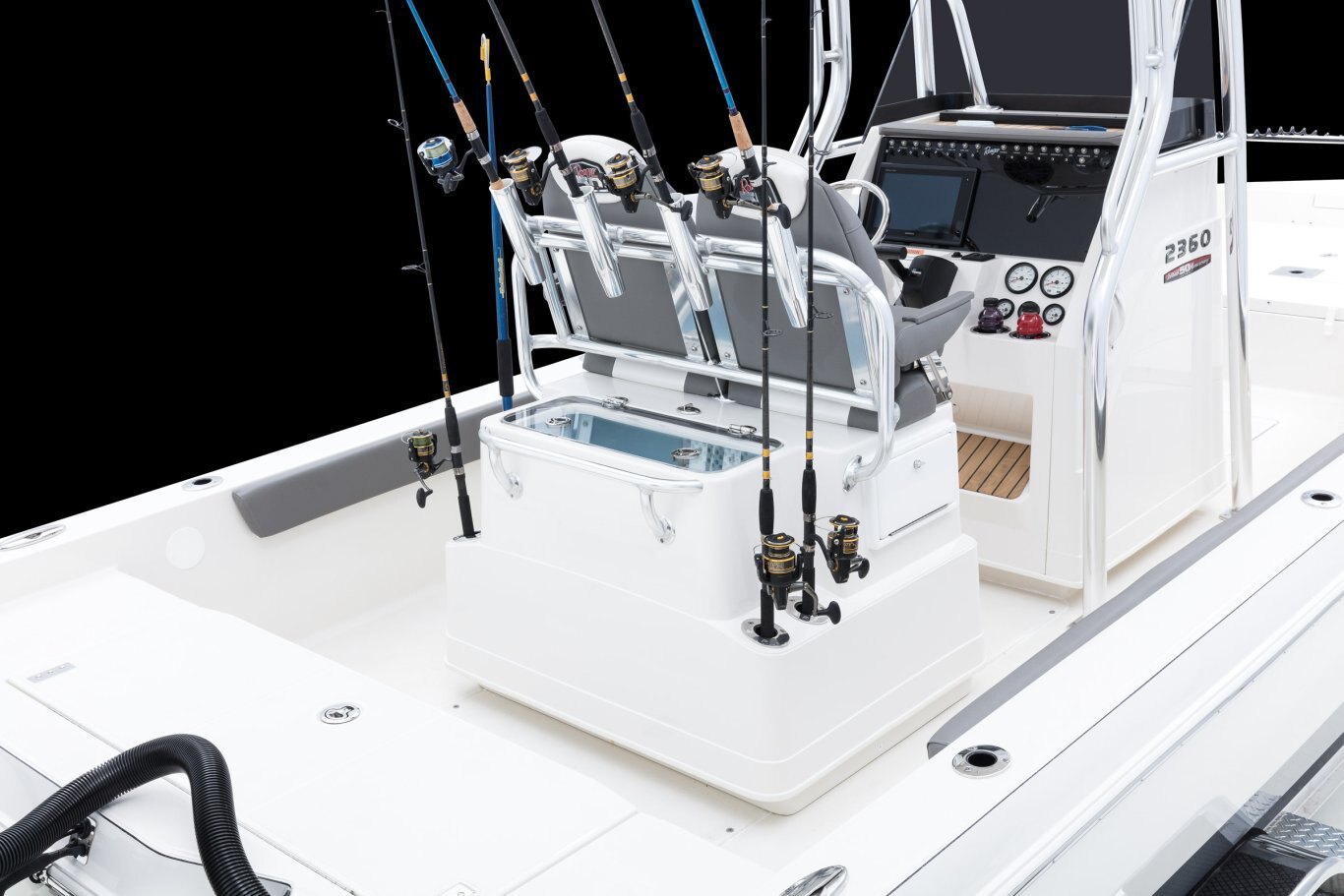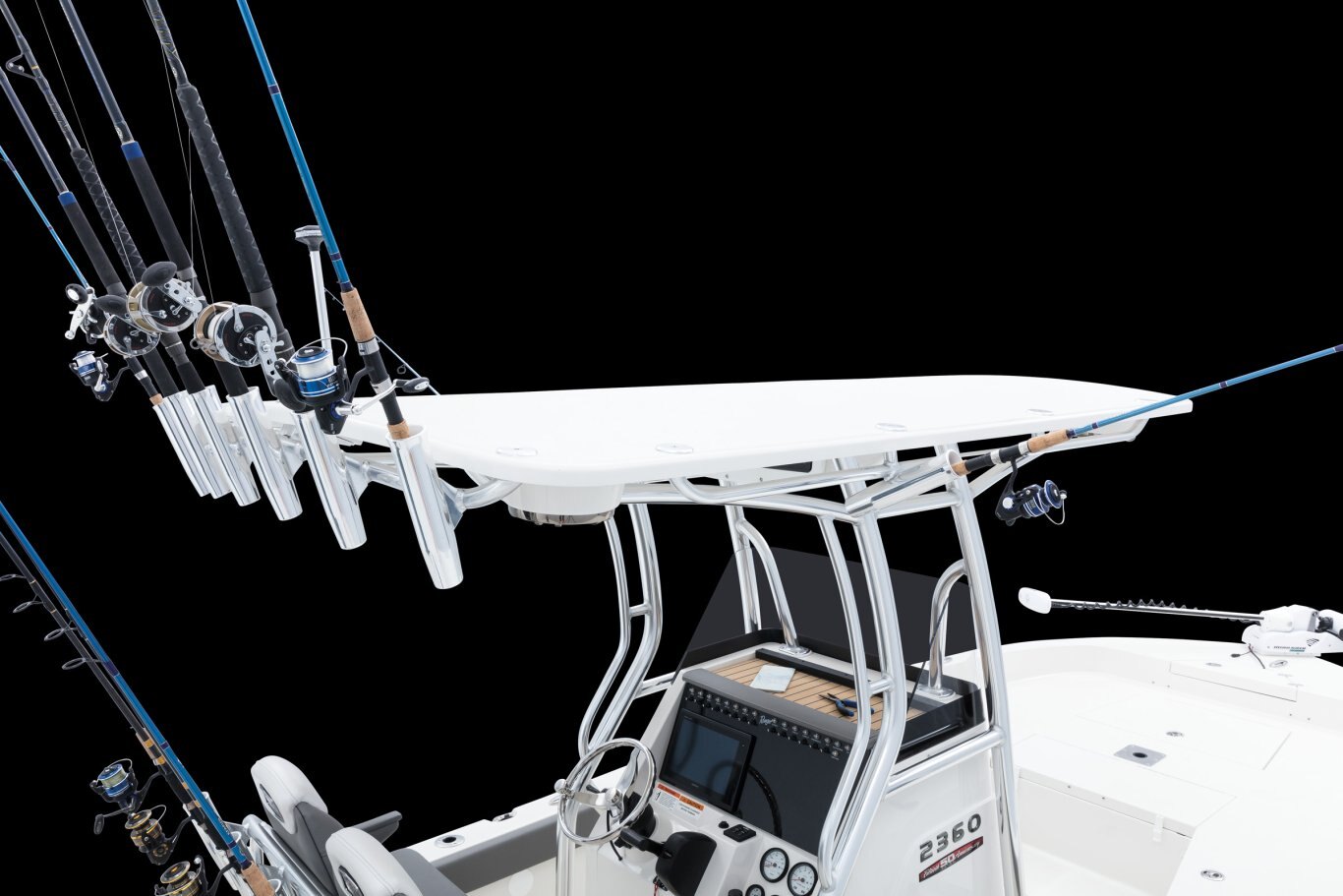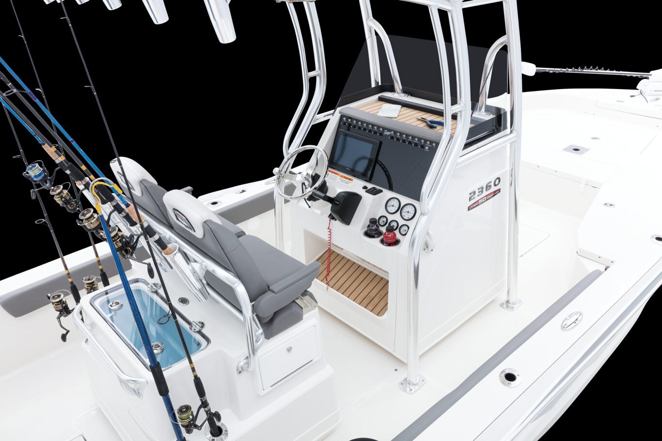 The Bay Boat, EvolvedThe Ranger® 2360 is designed for maximum confidence and comfort offshore, with stealth and a respectable draft for prowling the flats. At 23' 5" the 2360 carries a 300-horsepower rating and an expertly flared bow to smooth out rough seas. The angler-designed interior boasts a clutter-free layout and clever storage with plenty of room for bouncing bottom, kite fishing or trolling weed lines. Conveniences are integrated from bow to stern from the rear fold-down jump seats, large center console that can comfortably house a portable toilet to the lower, easier-to-access front casting deck. Within the hull is a massive stringer system with solid, reinforced chines and a world of our signature foam flotation that deliver that famous one-piece feel, along with our patented, stronger-than-steel pultruded fiberglass material. The Ranger 2360 truly is the bay boat, evolved. |