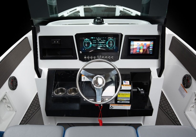 • Instrumentation: Fuel Level, Fuel Consumption, Tach, GPS Speed, Hour Meter, Compass, Depth Finder, Oil, Volt, Overheat, Check Engine
