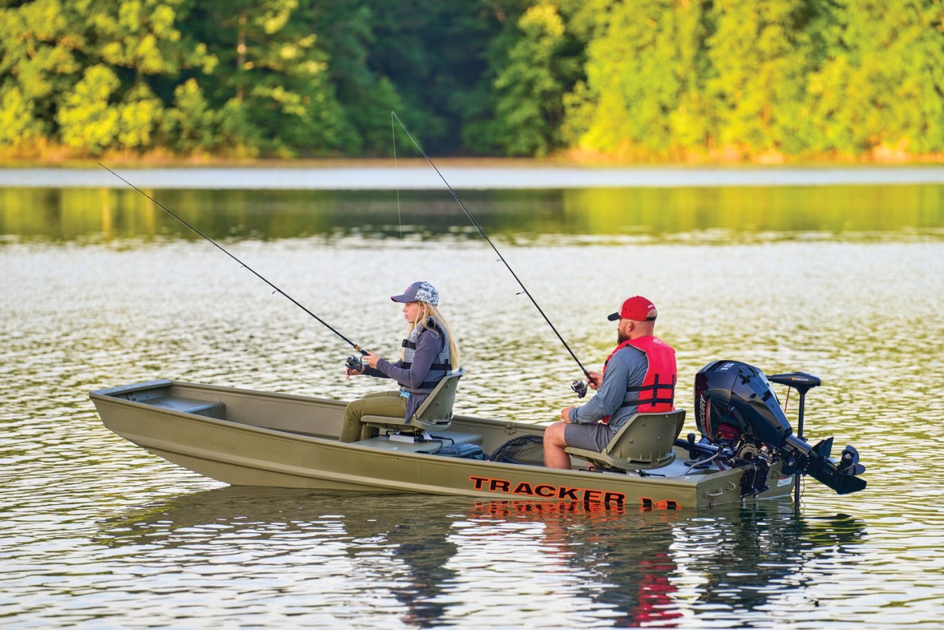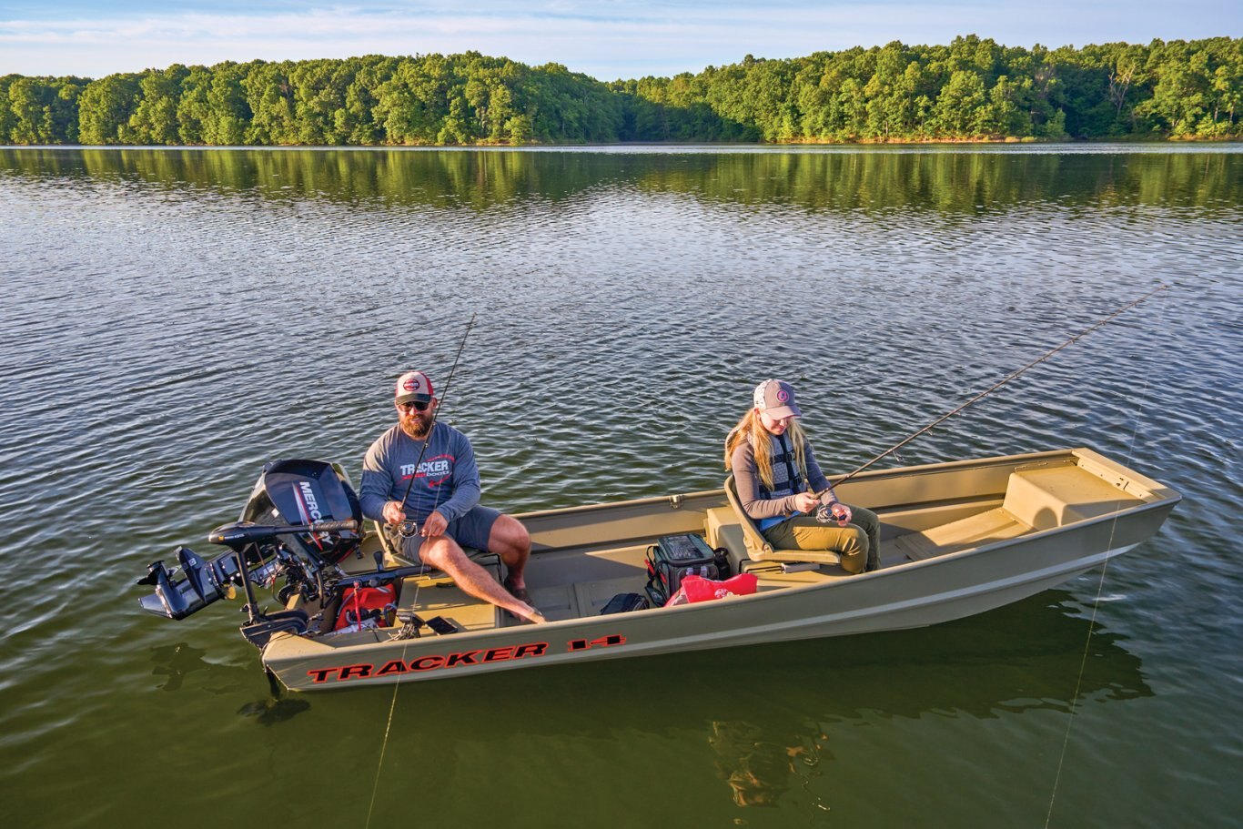 GRIZZLY® 14 JONIntroducing the TRACKER GRIZZLY 14 jon boat, an agile aluminum vessel crafted to comfortably host three anglers. Emphasizing the all-welded hull design, the TRACKER GRIZZLY 14 sets a new standard in durability and performance. Unlike riveted hulls that may develop vulnerabilities over time, the all-welded construction of the GRIZZLY 14 ensures a solid and seamless framework, enhancing longevity and reliability. Whether tackling challenging waters or cruising leisurely, the all-welded hull design guarantees a secure and enjoyable boating experience, making the GRIZZLY 14 a top choice for adventurous anglers. Reinforced with aft foam boxes and corner braces at the transom, this boat is engineered to thrive in rugged terrains, whether embarking on a dusty trail to your secluded fishing haven or enjoying a serene day on the water. The GRIZZLY 14 features center and aft bench seats, complemented by a spacious bow platform, offering ample space for gear storage and ensuring a cozy fishing experience for all occupants. With a Forest Green powder coat finish, the GRIZZLY 14 not only exudes a sleek look but also provides protection against corrosion, guaranteeing years of dependable use and enjoyment. With famed TRACKER PROMISE warranty-the best factory warranty in aluminum boats, you can trust in the quality and reliability of this vessel. For added convenience, an optional trailer is available to enhance portability and ease of transport. |