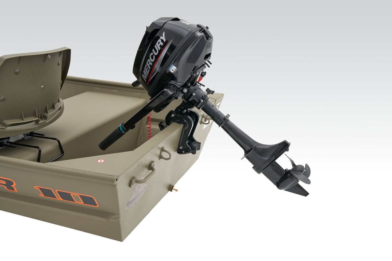 GRIZZLY® 10 JONThe TRACKER® GRIZZLY® 10 jon boat features an outstanding all-welded hull design, ensuring superior structural integrity and durability for all your fishing and boating needs. Crafted from rugged 5052 aluminum alloy and reinforced with advanced features such as pressed-in longitudinal corrugation, corner transom braces, and underseat flotation foam, this jon boat offers exceptional strength and longevity. With a durable powder-coat finish and the renowned TRACKER PROMISE warranty-the best factory warranty in aluminum boats, you can trust in the quality and reliability of this vessel. The compact size and stability of the GRIZZLY 10 make it easy to transport and maneuver in various water conditions, providing versatility and performance for all your fishing adventures. Additionally, an optional trailer is available for added convenience, enhancing your overall boating experience. |