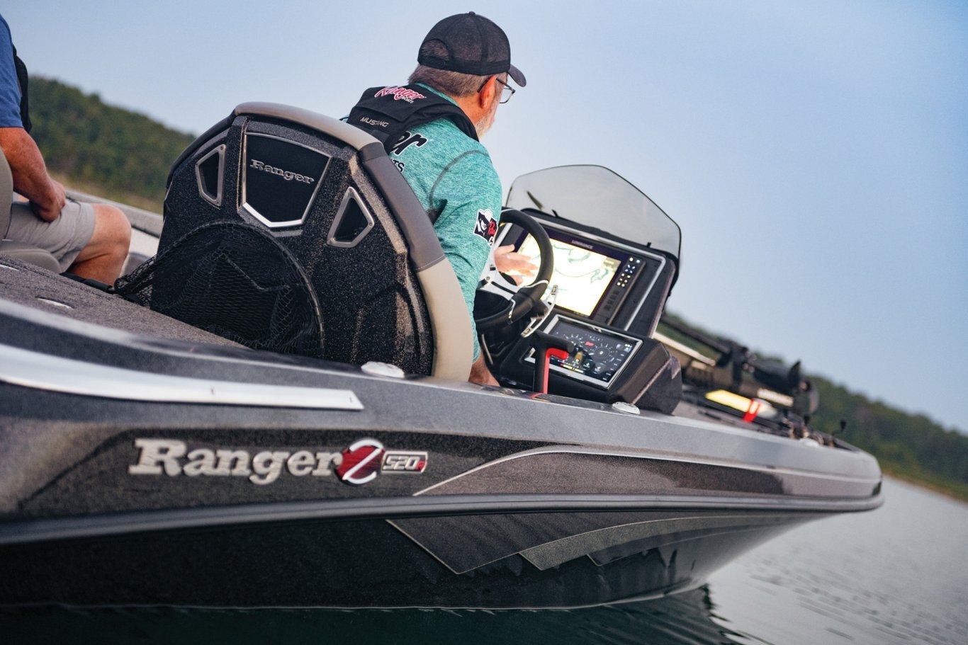 THE FAST TRACK TO THE PODIUMThe Ranger Z520R is the next chapter in bass boat evolution and a quantum leap in design, functionality and dominating performance and the Ranger Cup Equipped package adds in top-tier features at a significant cost savings. For 2025 we’ve upped the ante even more by adding a host of top-tier touches to set apart this premium rig even more. New heated Cloud 9™ air ride SRS driver seating carries you in comfort, while a new non-skid traction pad graces the front deck for stylish functionality. Protecting your investment is a newly redesigned boat cover for even greater fit and security. Fishability gets an upgrade with a Minn Kota® Quest 115-pound thrust trolling motor and an optional dual BBT electronics mount keeps your graphs secure and easy to read in all conditions. Finally, a color-matched cockpit floor, push-to close latches, and compartment liner mats complement the peerless style of the Z520R Ranger Cup Equipped. We took the legendary Z Comanche “C” hull and digitally scanned and perfected it, resulting in an instant hole shot and stronger top-end. Every appreciable element of the cockpit, decks, and storage boxes has been revamped to complement the enhanced performance of the R Series. We’ve also gone to great lengths to incorporate more standard technology into the R Series, to not only raise the bar for the industry, but to give you greater comfort, convenience, and peace of mind. An all-new console carries dual graphs or a single 16” unit and the touchscreen Ranger R.I.D.E. system integrates total control over every boat and engine function. The all-new seats rest on easy-to-adjust slides and the color-matched fiberglass shellbacks take the aesthetic to a new level. A key fob and integrated push-to-start ignition let you start-up quicker and deliver greater security when you’re on the road. Inside the coin box is a wireless phone charger, and in the battery box are standard lithium batteries. Storage boxes are demonstrably larger, thanks to a redesigned stringer system that builds on our One-Piece Feel Interloc™ Construction. The rod boxes feature our Echelon Rod Storage System with a tri-level storage shelf system that simplifies rod management and offers more room for sticks up to 9’. Inside and out, the Z520R ushers in the next generation of domination. The Z520R. It’s a whole new era of Ranger. |