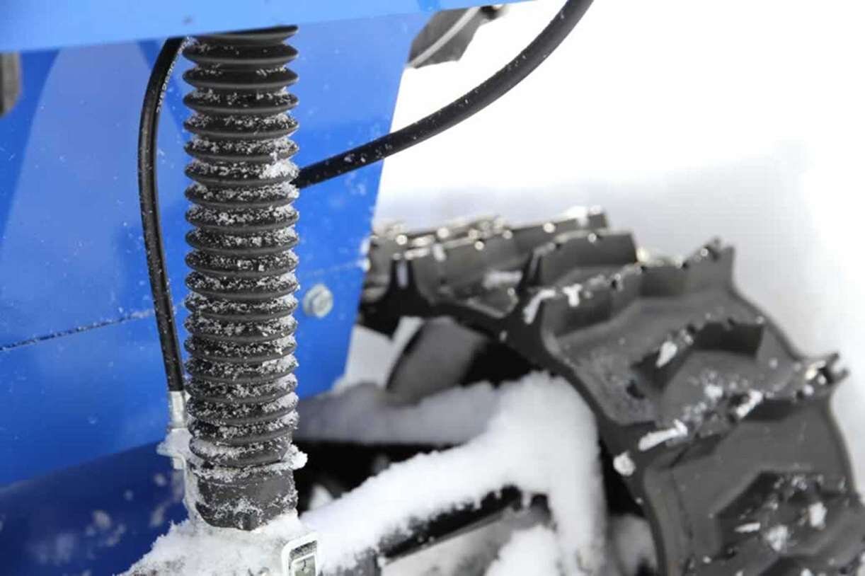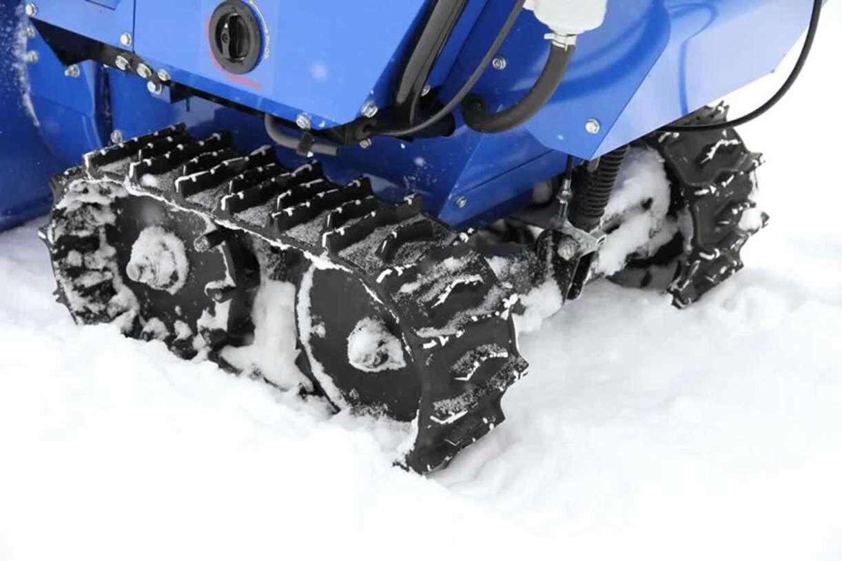 • Rubberized track drive system plows through snow conditions that stop other blowers cold. Track drive provides superior traction on steep driveways or laneways and also makes it possible to climb stairs. The tracks are 130 mm (5.1") wide. Wheeled blowers don't even compare.