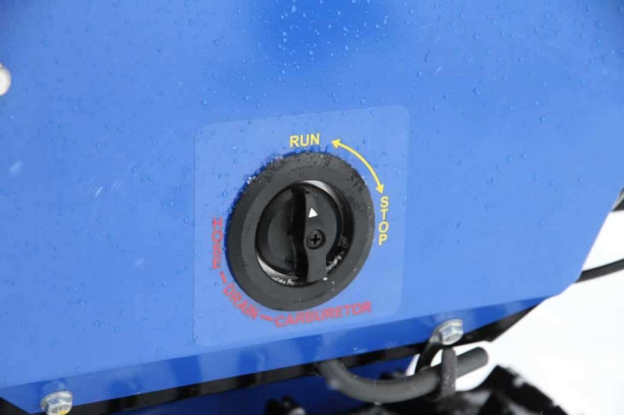 • The resin lined chute is electronically controlled by an easy to use joystick and has a turning radius of up to 220°, so you can direct the snow just about anywhere. The resin lining helps to reduce snow sticking and build up.